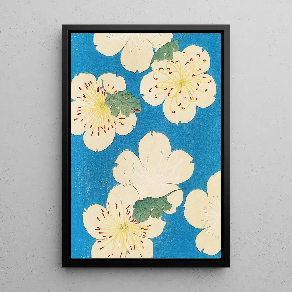 Tämä taidegrafiikka Bijutsukai Pl166, Furuya Korinin teos, johdattaa meidät maailmaan, jossa luonto kukoistaa arvokkaasti. Hienostuneet värit, pastellisävyistä kirkkaampiin sävyihin, luovat rauhoittavan ja mietiskelevän ilmapiirin. Taiteilijan tekniikka, joka yhdistää akvarellin ja musteen, mahdollistaa kukkien keveyden vangitsemisen samalla tarjoten koko teokselle hienovaraisen syvyyden. Jokainen yksityiskohta, jokainen terälehti, tuntuu elävän omaa elämäänsä, kutsuen katsojan uppoutumaan tähän kukkivaan kohtaukseen.