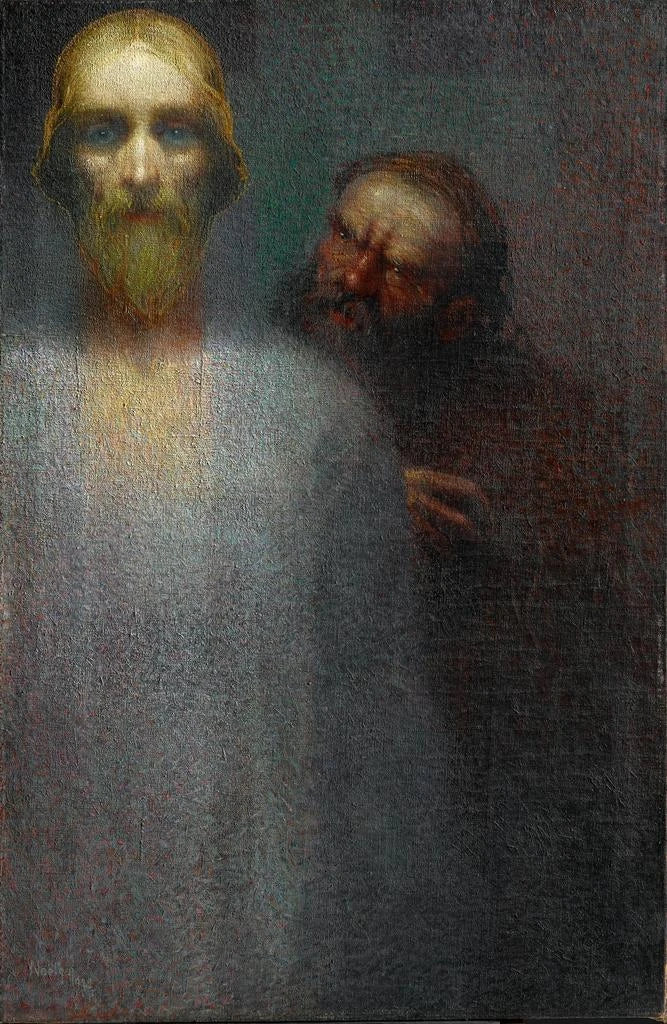 Noel Quintavalle, actif au début du XXe siècle, s'inscrit dans un mouvement artistique où le réalisme rencontre le symbolisme. Sa formation et ses voyages à travers l'Europe ont enrichi son style, lui permettant d'explorer des thèmes profonds et universels. L'art de Quintavalle se distingue par sa capacité à traduire des récits bibliques en images puissantes, tout en s'inspirant des maîtres anciens. "La trahison du Christ" est un exemple frappant de son talent à évoquer des émotions complexes et à engager le spectateur dans une réflexion sur la nature humaine et la spiritualité.
