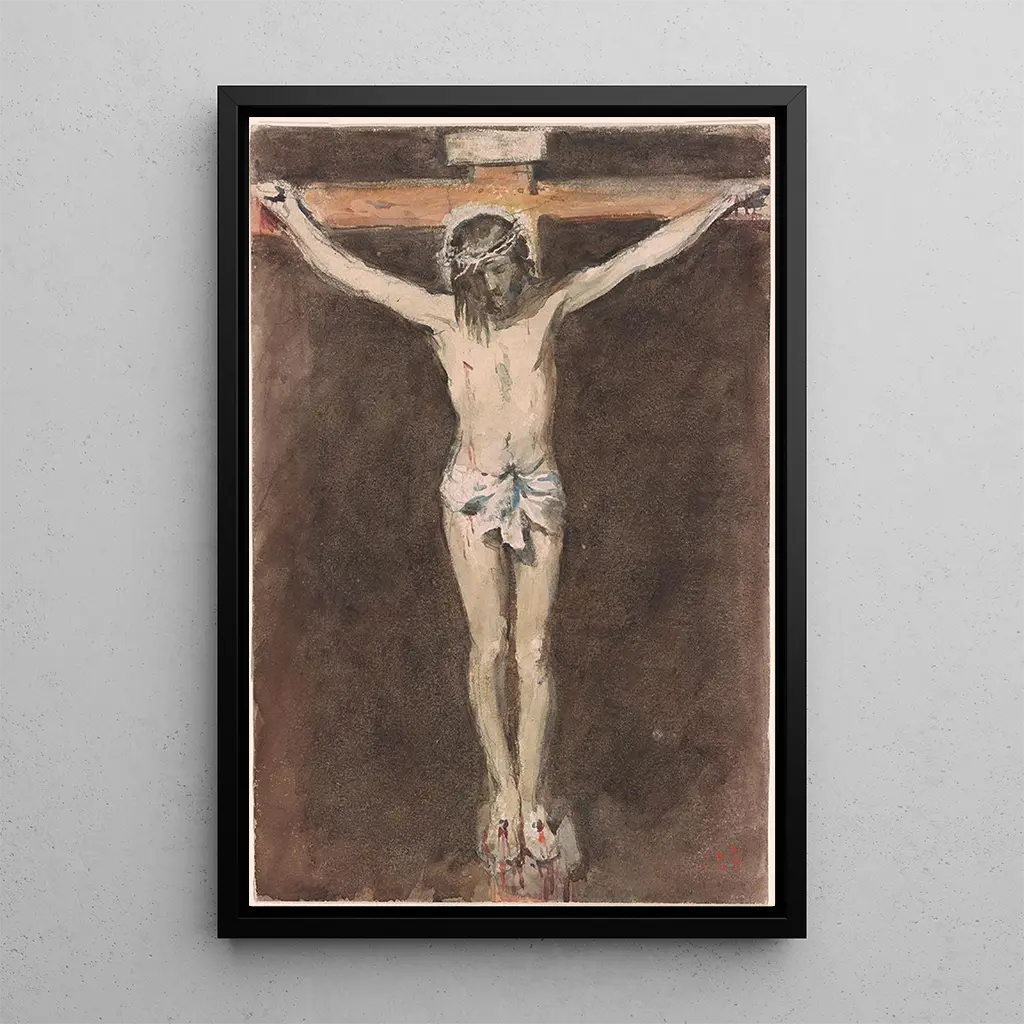 Taidegrafiikan kopio Kristuksesta ristillä on teos, joka vangitsee emotionaalisella voimallaan. Tämä maalaus, tummine väreineen ja voimakkaita kontrasteineen, herättää tuskan ja lunastuksen tunteita. Taiteilijan tekniikka, varjojen ja valojen yhdistelmä, luo dramaattisen ilmapiirin, joka heti kiinnittää katsojan huomion. Kristuksen ruumis, roikkumassa taivaan ja maan välillä, symboloi sekä inhimillistä kärsimystä että jumalallista toivoa, kutsuen katsojan pohtimaan uskoa ja uhrausta.
