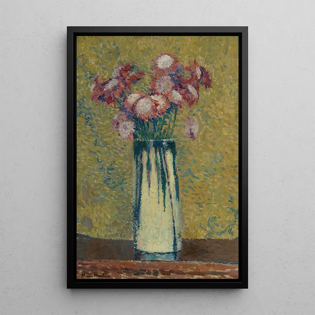 Henri Martin, syntynyt vuonna 1860, tunnetaan yhtenä ranskalaisen impressionismin mestareista. Hänen taiteilijauransa, joka on täynnä jatkuvaa valon etsintää, johdatti hänet tutkimaan monenlaisia teemoja, alkaen maisemista ja päättyen kuolleisiin luontokappaleisiin. Vaikutteita hän sai nykytaiteilijoilta kuten Monet, ja hän kehitti henkilökohtaisen tyylinsä yhdistämällä perinnettä ja innovaatioita. "Vaasikimppu" kuvaa täydellisesti hänen kykyään vangita kukkien ohikiitävä kauneus, samalla korostaen värin merkitystä hänen teoksissaan. Martin onnistui luomaan syvän yhteyden taiteen ja luonnon välille, tehden hänestä aikansa merkittävän hahmon.