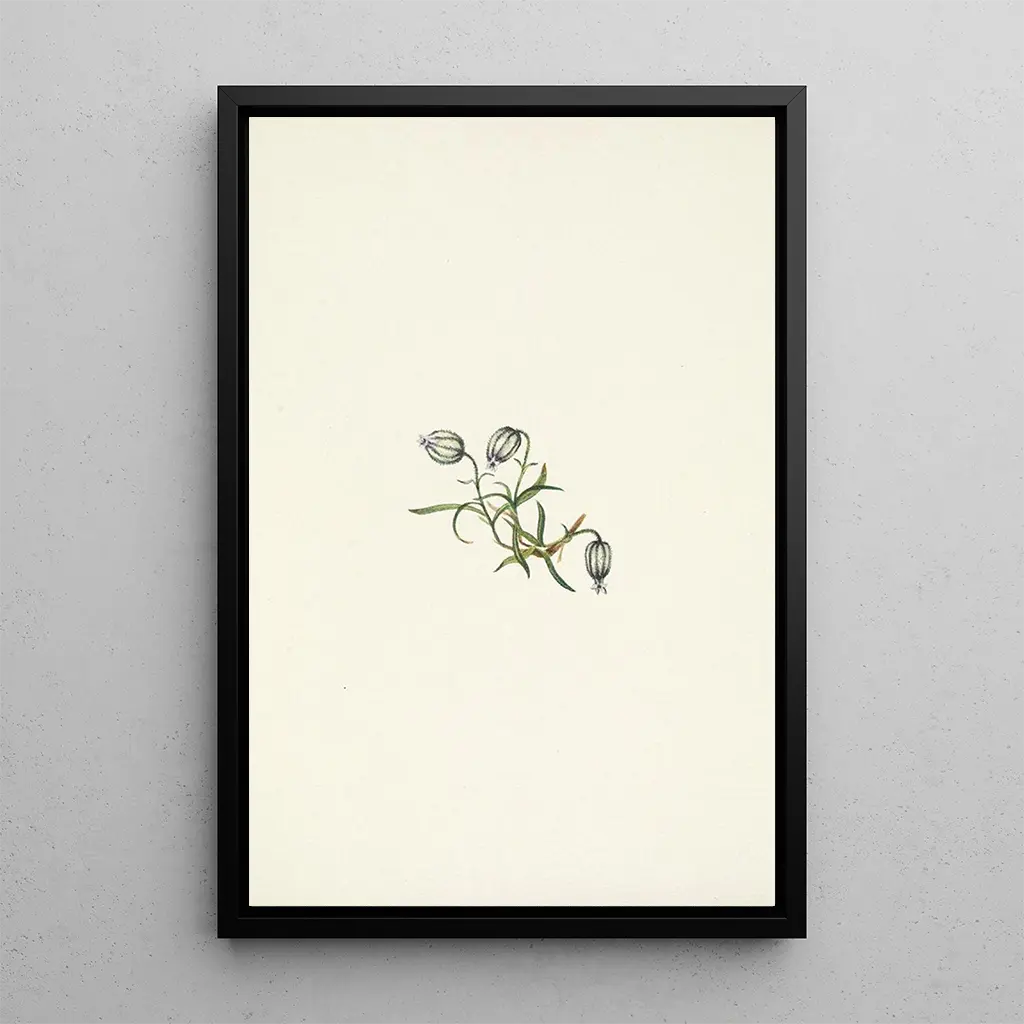 La taidegrafiikkaa Compagnon penché Lychnis apetala -taulun reproduktion syöksyy kukkivaan maailmaan, jossa pehmeys vallitsee. Pastellivärit, vaaleanpunaisesta hennon vihreään, lomittuvat harmonisesti, luoden rauhoittavan ilmapiirin. Mary Vaux Walcott, hänen huolellisella tekniikallaan, onnistuu vangitsemaan tämän kasvin haurauden, melkein kuin se olisi taipumassa ajan painon alla. Yksityiskohdat, kuten lehtien suonet ja terälehtien tekstuuri, kertovat tarkasta havainnoinnista ja luonnon rakkaudesta, kutsuen katsojan hiljaiseen ja kunnioittavaan pohdintaan.