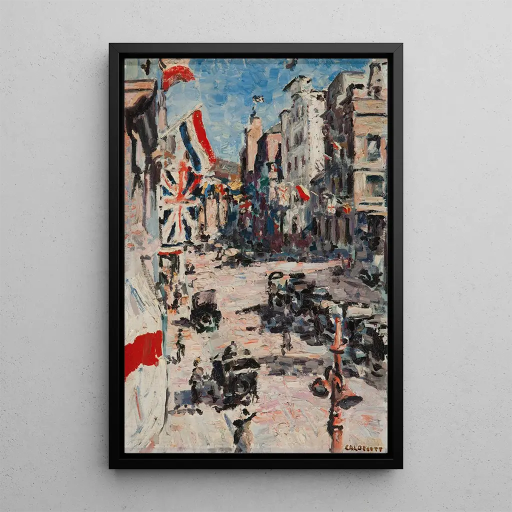 Harry Caldecott, joka oli aktiivinen 1900-luvun alussa, tunnetaan kyvystään vangita arkipäivän hetkiä suurella arvokkuudella. Hän sai vaikutteita realismitaiteen liikkeestä ja osasi yhdistää perinteitä ja moderniutta teoksissaan. Hänen työnsä heijastaa aikansa sosiaalisia ja kulttuurisia muutoksia, kuten keskiluokan kasvua ja kasvavaa kiinnostusta julkisiin tapahtumiin. Caldecottia vaikutti myös hänen aikalaistensa tyyli, ja hän sisällytti impressionismin elementtejä pysyen kuitenkin omaleimaisessa tyylissään. Hänen panoksensa brittiläiseen taiteeseen on kiistaton, ja "Visite royale 1925" on tästä esimerkki.