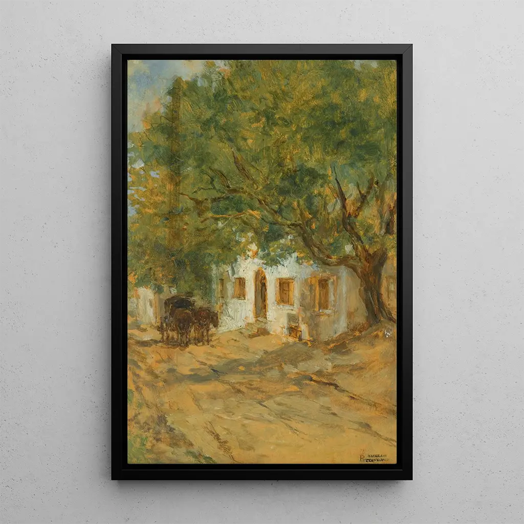 Dans "Une rue de village", August von Pettenkofen capture l'essence d'un quotidien paisible, où la lumière joue sur les façades des maisons et où les personnages semblent s'animer sous le regard du spectateur. Les couleurs chaudes et terreuses évoquent une atmosphère accueillante, tandis que la technique de peinture à l'huile donne vie aux détails, des pavés aux ombres des arbres. Ce tableau invite à une contemplation douce, où chaque élément raconte une histoire, et où le temps semble suspendu, offrant un aperçu d'une époque révolue.