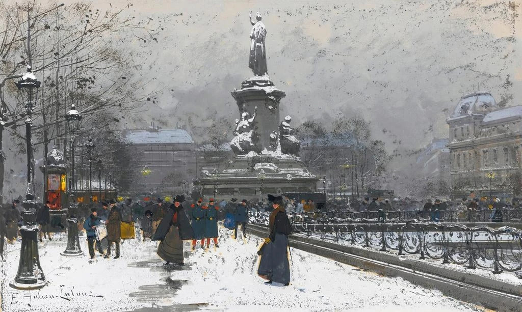 "La Place de la République" d'Eugène Galien-Laloue capture l'effervescence d'un moment de vie citadine, où les passants, les arbres et les bâtiments s'entrelacent dans une danse dynamique. Les couleurs vives et les détails minutieux de cette œuvre évoquent une atmosphère animée, typique des places publiques. La technique de Galien-Laloue, qui mêle impressionnisme et réalisme, permet de ressentir l'énergie de la ville tout en offrant une vision romantique de la vie urbaine. Chaque personnage, chaque élément de la scène contribue à créer une narration visuelle riche et engageante.