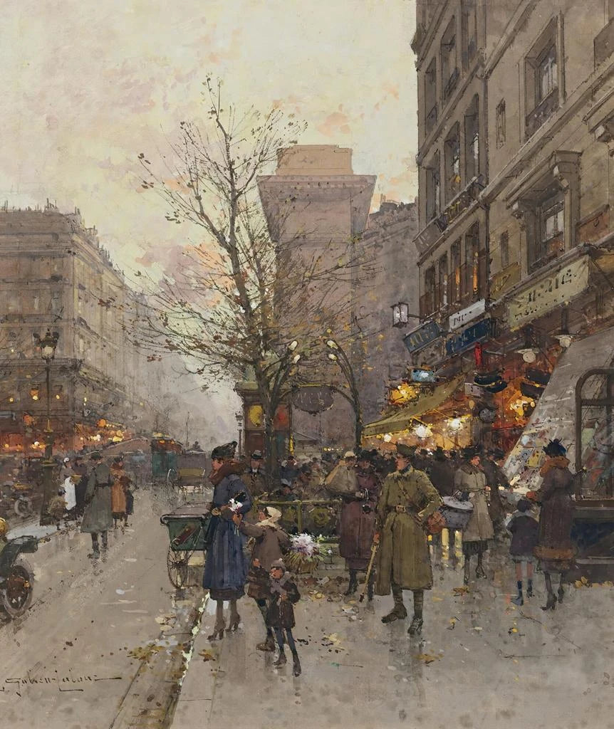Eugène Galien-Laloue, syntynyt 1854, on ranskalainen maalari, joka omisti uransa kaupunkimaisemien ja Pariisin monumenttien kuvaamiseen. Hänen teoksensa sijoittuu post-impressionismin suuntaukseen, mutta hän oli myös vaikuttunut impressionistien tekniikoista. Hänen rakkautensa kaupungin valoon näkyy jokaisessa hänen teoksessaan. Galien-Laloue on onnistunut vakiinnuttamaan asemansa kaupunkimaalauksen mestarina, ja hänen teoksiaan arvostetaan nykyään keräilijöiden ja taiteen ystävien keskuudessa. Hänen ainutlaatuinen lähestymistapansa valoon ja väriin avasi tien monille seuraaville taiteilijoille, jotka seurasivat hänen jalanjälkiään. Juhlistaen ikonis...