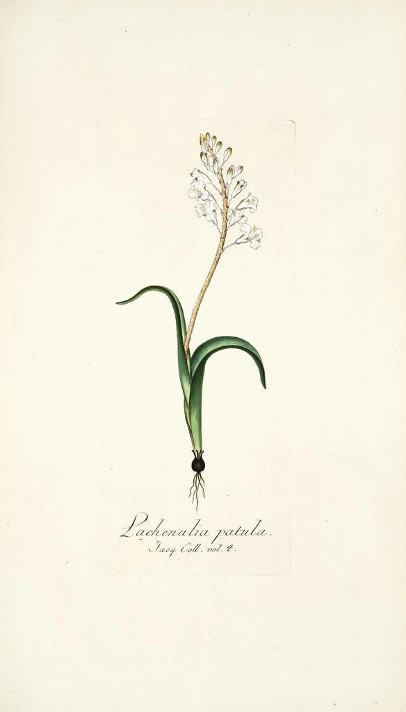 Nikolaus Joseph Freiherr von Jacquin, 1700-luvun merkittävä hahmo, osasi yhdistää taiteen ja tieteen botaniikan teoksissaan. Intohimoinen kasvitieteilijä, hän matkusti ympäri maailmaa tutkiakseen ja dokumentoidakseen kasvilajeja. Hänen taiteellinen lähestymistapansa, rokokoon vaikutteita saanut, korostaa yksityiskohtien huolellisuutta ja kirkkaita värejä. Taidegrafiikka Lachenalia patula, uskollisella ja esteettisellä esityksellään, todistaa Jacquinin merkityksen botaniikan taiteen historiassa. Hänen teoksensa inspiroivat yhä taiteen ja kasvitieteen harrastajia eri aikakausina.