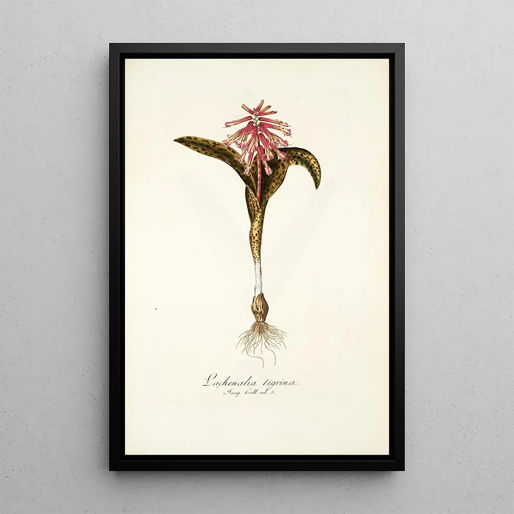 Lachenalia tigrina -taidegrafiikan reproduktio on erinomainen koristeellinen valinta tuomaan luonnon elementtiä sisätiloihisi. Olipa kyseessä olohuone, toimisto tai makuuhuone, tämä elävä taulu kiinnittää huomion ja herättää ihailua. Tulostuslaatu takaa uskollisuuden väreihin ja yksityiskohtiin alkuperäisteoksessa, samalla lisäten taiteellista ulottuvuutta tilaan. Esteettisen vetovoimansa ansiosta tämä kangas muodostuu keskeiseksi osaksi sisustustasi, viitaten kasvilajin kauneuteen ja luonnollisten värien harmoniaan.
