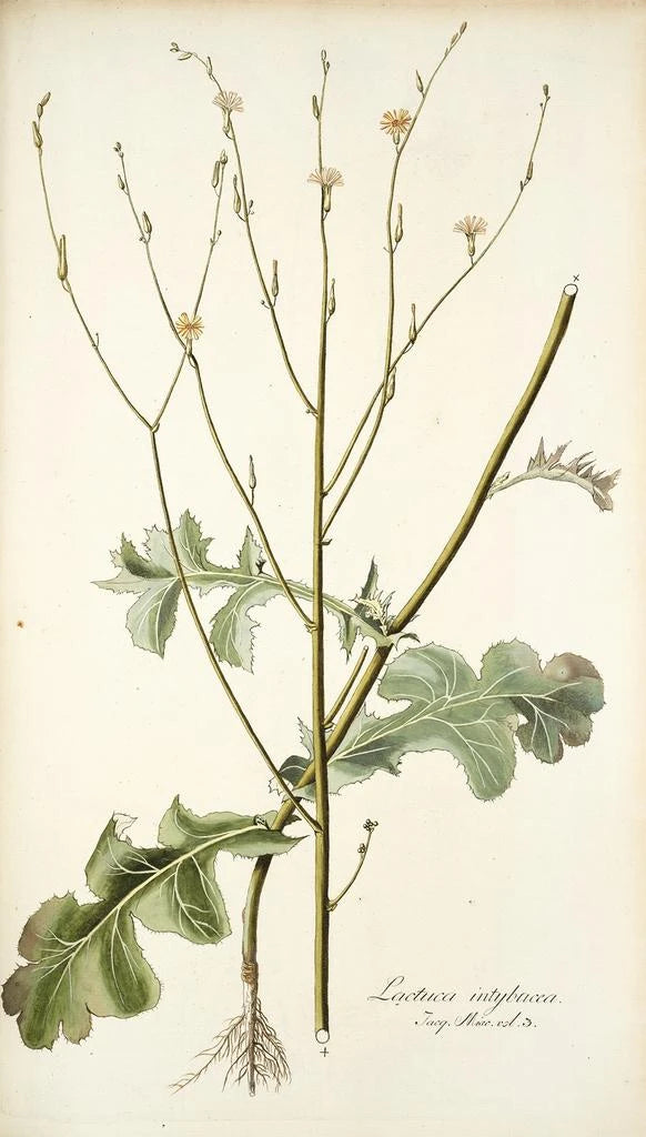 Nikolaus Joseph Freiherr von Jacquin, 1700-luvun merkittävä hahmo, mullisti kasvitieteellisen taiteen. Tieteellisestä taustasta lähtöisin, hän matkusti ympäri maailmaa tutkiakseen kasvillisuutta ja sisällytti löytönsä teoksiinsa. Hänen tyylinsä, joka on saanut vaikutteita rokokosta, erottuu erityisesti yksityiskohtien huolellisesta huomioimisesta ja eloisasta väripaletistaan. Jacquin ei ainoastaan edistänyt taidetta, vaan oli myös keskeisessä roolissa modernin kasvitieteen kehityksessä. Lactuca intubacea todistaa hänen lahjakkuudestaan ja sitoutumisestaan luontoon.