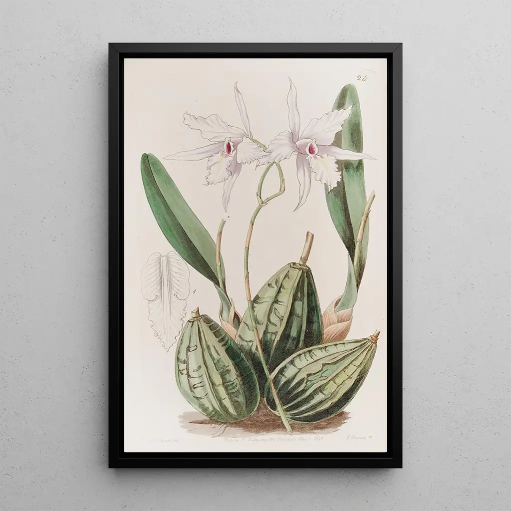 Laelia effilée, Sydenham Edwardsin merkittävä taidegrafiikka, vangitsee kukkien ohikiitävän kauneuden poikkeuksellisella tarkkuudella. Tämä reproduktio hehkuu eloisina sävyinä ja hienovaraisina vivahteina, jotka luovat rehevän puutarhan vaikutelman, jossa jokainen terälehti tuntuu värähtelevän valon alla. Edwardsin käyttämä vesiväritekniikka mahdollistaa hienovaraiset värisävyt, jotka herättävät tämän eksoottisen kasvin eloon. Teoksen tunnelma kutsuu mietiskelyyn ja kuljettaa katsojan maailmaan, jossa luonto kukoistaa kaikessa loistossaan.
