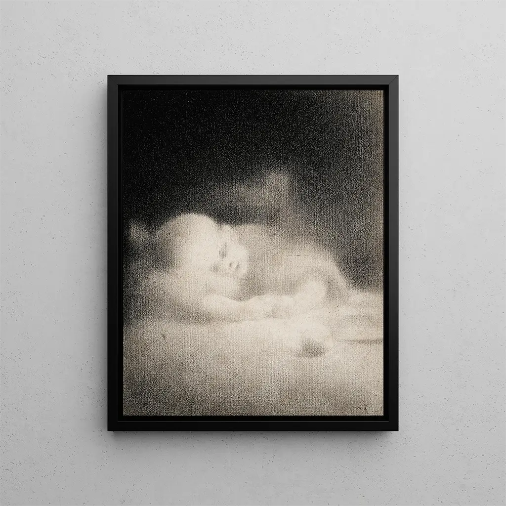 Charles Angrandin teos "Lapsen nukkumaanmentut" on herkkä kuvaus lapsuuden viattomuudesta ja rauhallisuudesta. Tämä taulu, joka huokuu rauhallista tunnelmaa, kutsuu katsojan sukeltamaan maailmaan, jossa aika vaikuttaa pysähtyneen. Taiteilija, tämän teoksen kautta, tallentaa ohikiitävän hetken, lapsen nukkuvan, puhtauden ja haavoittuvuuden symbolin. Tämän kohtauksen kauneus ei piile vain valitussa aiheessa, vaan myös siinä, kuinka Angrand onnistuu välittämään syviä tunteita maalauksellisella tekniikallaan. Tämä taulu on paljon enemmän kuin pelkkä taidetuloste; se on elämän ja sen lempeimpien hetkien juhla.