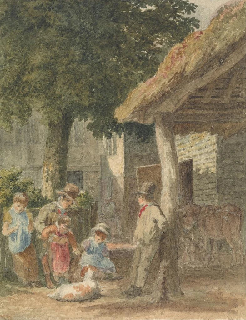 Lapset koiran kanssa maatilan pihalla - Robert Hills