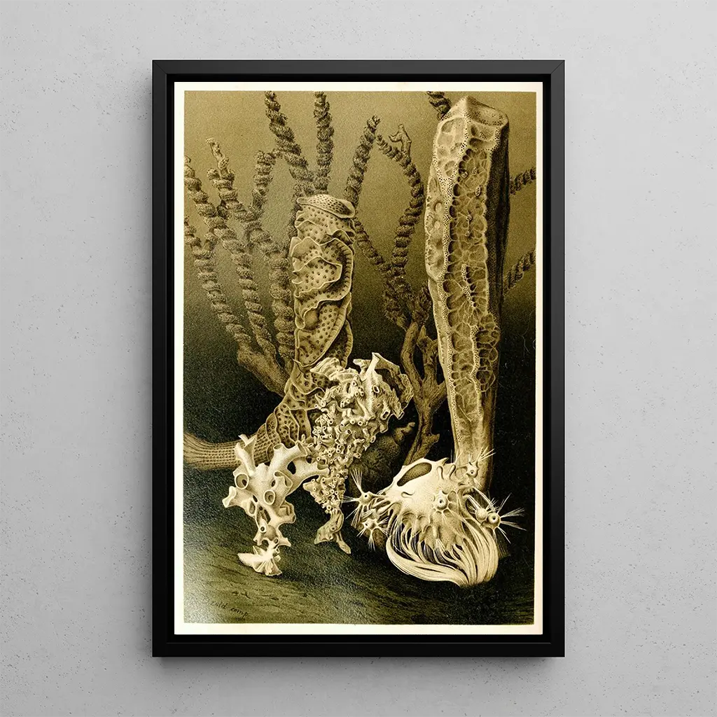 Lasinaluset: valon ja värin tanssi Lteos "Lasinaluset" kutsuu kiehtovaan visuaaliseen tutkimusmatkaan, jossa valo näyttelee keskeistä roolia. Sinisen ja vihreän sävyt sekoittuvat harmonisesti, luoden vedenalaisen ja eteerisen tunnelman. Käytetty tekniikka, todennäköisesti maalaamisen ja kollaasin yhdistelmä, herättää eloon tekstuurit, jotka tuntuvat lähes kosketeltavilta. Jokainen sivellinvedos kuvaa veden sulavuutta, kun taas orgaaniset muodot muistuttavat merenpohjien kauneudesta. Tämä kangas, sekä herkkä että dynaaminen, kuljettaa katsojan maailmaan, jossa luonto ja taide kohtaavat. Nimetön: salaperäisen ajan heijastus Ltaiteilija nimettömänä "Lasinaluset" -teoksen takana sukeltaa aikaan, jolloin käsityötaito ja luovuus sekoittuivat arkipäivään. Vaikka tästä taiteilijasta on vähän tietoa, on todennäköistä, että hänet vaikutti aikansa taidesuuntaukset, pyrkien vangitsemaan luonnon katoavaista kauneutta. Tämän ajan nimettömät teokset ovat usein täynnä tunnetta ja symboliikkaa, osoittaen syvää taiteellista herkkyyttä. Tämä maalaus erityisesti kuvaa läheistä yhteyttä ympäristöön, mikä on yhteinen piirre monille tämän aikakauden teoksille. Monipuolinen koristeellinen hankinta "Lasinaluset" taidegrafiikka on erinomainen koristevalinta erilaisiin tiloihin, olipa kyseessä olohuone, toimisto tai makuuhuone. Sen rauhoittava väripaletti ja sulavat muodot tuovat rauhan tunnetta mihin tahansa sisustukseen. Taidegrafiikan laatu takaa uskollisuuden alkuperäiselle teokselle, mahdollistaen sen esteettisen viehätyksen nauttimisen ilman kompromisseja. Sisällyttämällä tämän taidegrafiikan osaksi sisustustasi, luot tilaan ainutlaatuisen tunnelman, joka kutsuu mietiskelyyn ja pakomatkaan.