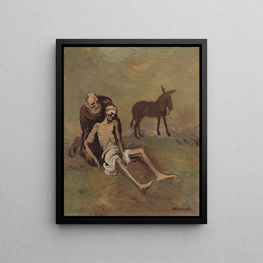 Laajan taidehistorian panoraman aikana jotkut teokset erottuvat kyvyllään herättää ajattomia kertomuksia ja syviä tunteita. "Le bon Samaritain" Cyprian Majernikilta kuuluu tähän perinteeseen, tarjoten vaikuttavan esityksen Raamatun kertomuksesta, joka ylittää aikakaudet. Tämä teos, sekä yksinkertainen että syvällinen, kutsuu katsojan sukeltamaan maailmaan, jossa myötätunto ja ihmisyys kohtaavat. Tämän taidetulosteen kautta pääsemme käsiksi moderniin tulkintaan klassisesta teemasta, joka resonoi universaaleiden arvojen kanssa ja koskettaa edelleen sydämiä.