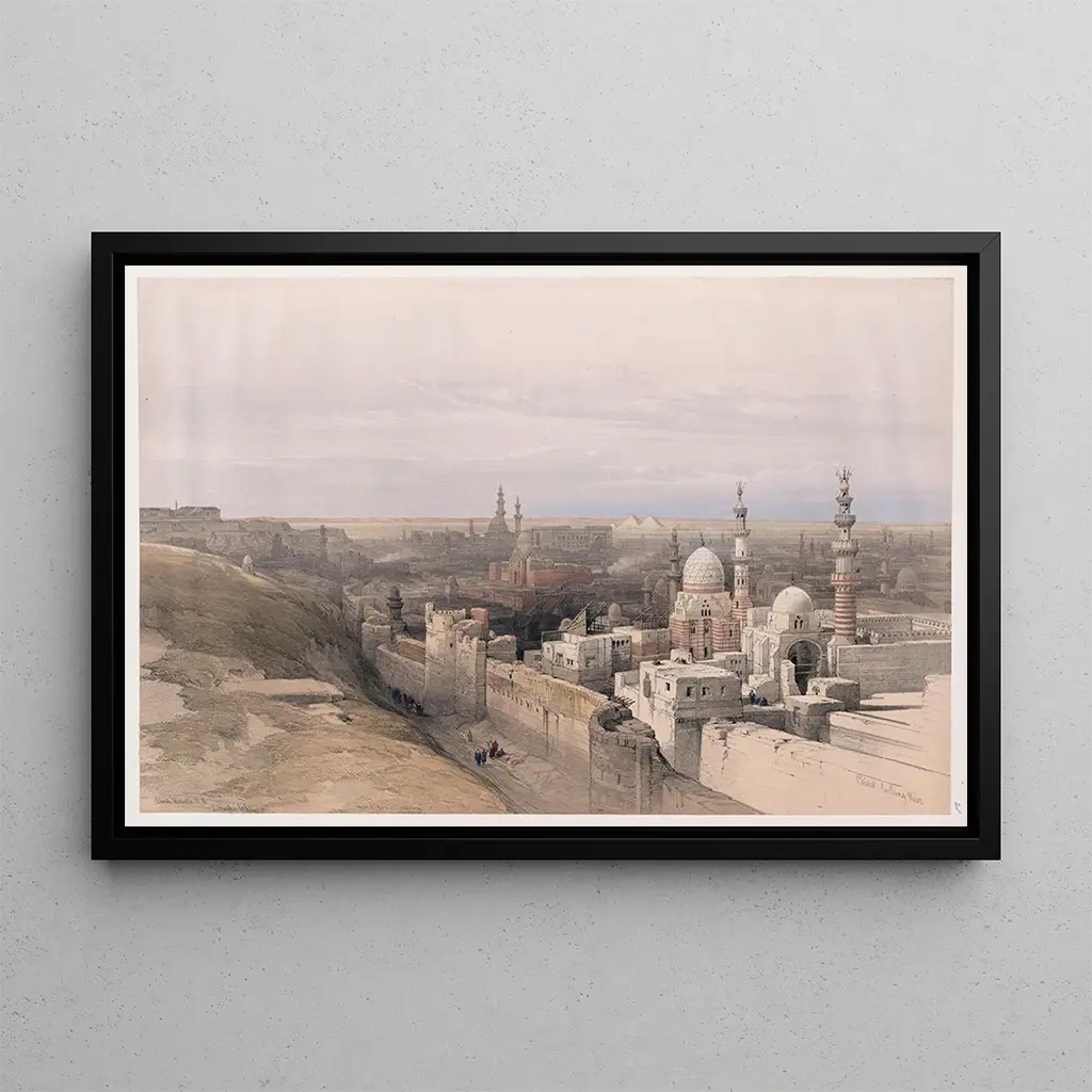 Le tableau "Le Caire vu de l'ouest" de David Roberts nous transporte instantanément au cœur de l'Égypte du XIXe siècle. Cette œuvre, réalisée à l'aquarelle, se distingue par ses couleurs chaudes et vibrantes, qui évoquent la lumière dorée du soleil levant sur les bâtiments historiques de la ville. La composition, riche en détails, présente des minarets élancés et des maisons aux toits plats, créant une atmosphère à la fois paisible et dynamique. L'artiste réussit à capturer l'essence de la vie quotidienne au Caire, invitant le spectateur à contempler cette scène animée où l'Orient se dévoile dans toute sa splendeur.