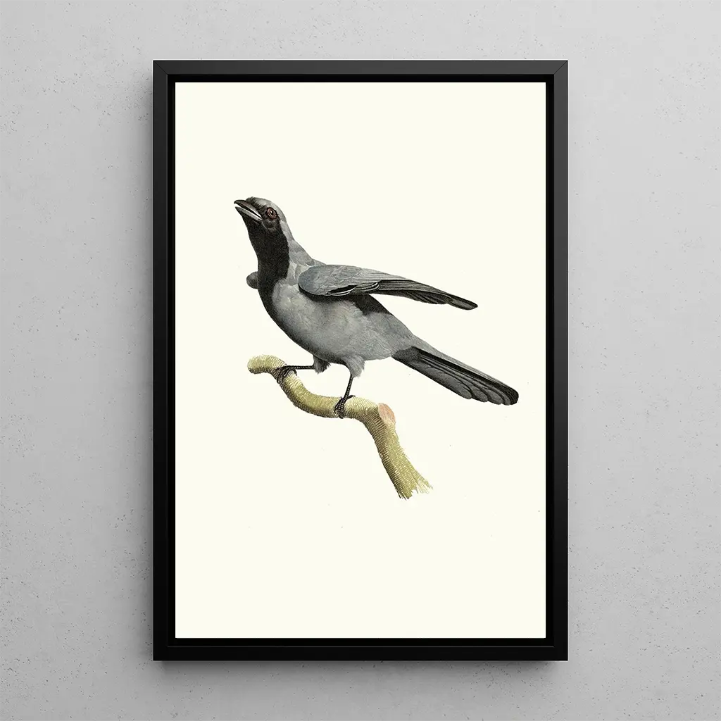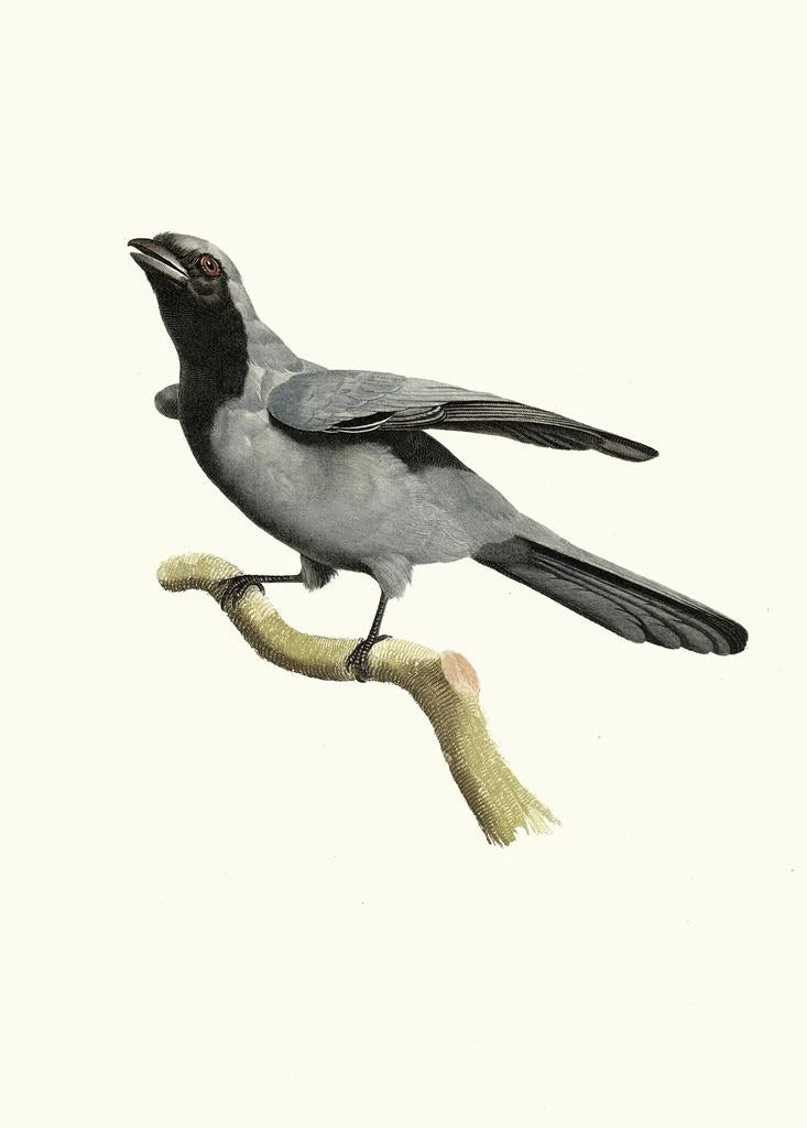 Taidegrafiikka Le Rollier masque noir paljastaa vaikuttavan lintutaideteoksen, jossa on tummasävyinen höyhenpeite ja irisoivia heijastuksia. Jacques Barraband, hänen taitonsa ansiosta, onnistuu vangitsemaan tämän linnun eleganssin, jonka terävä katse ja erottuva maski lisäävät teokseen salaperäisen ulottuvuuden. Höyhenten yksityiskohtaiset yksityiskohdat, jotka on toteutettu hienostuneella vesiväritekniikalla, luovat sekä kiehtovan että runollisen ilmapiirin, kutsuen katsojan uppoutumaan lintujen kiehtovaan maailmaan.