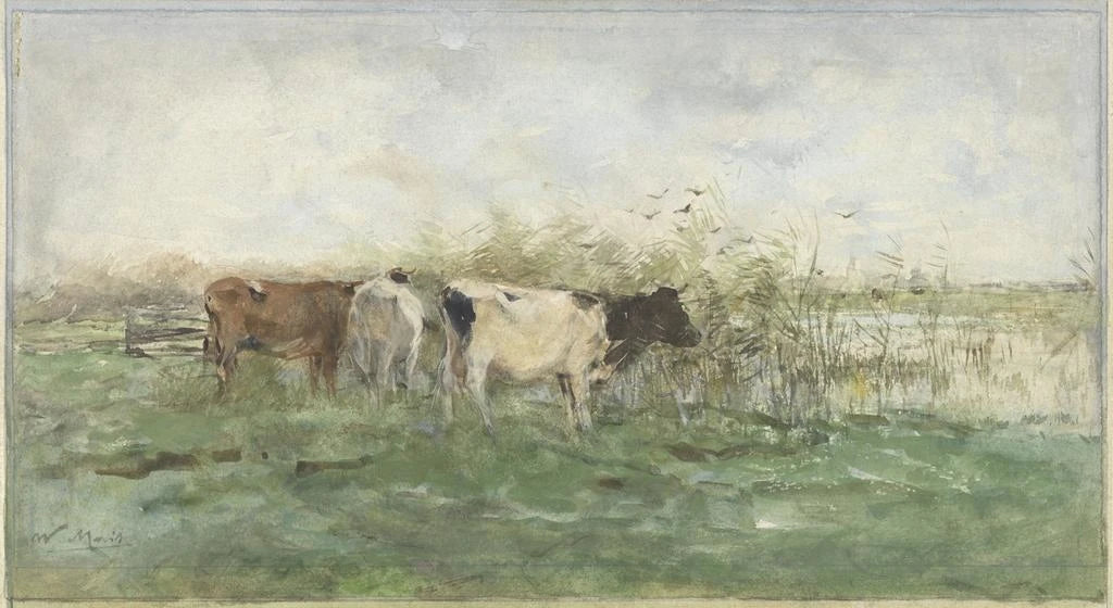 Willem Maris, né en 1844 aux Pays-Bas, est reconnu comme l'un des pionniers de la peinture animalière. Influencé par le mouvement réaliste, il s'est spécialisé dans la représentation de la faune et des paysages, capturant la beauté des scènes rurales. Maris a su s'imposer dans le monde de l'art grâce à son style unique, alliant précision et sensibilité. Ses œuvres, souvent empreintes de lumière et de couleur, témoignent d'une observation minutieuse de la nature. En cette période de la fin du XIXe siècle, il a contribué à renouveler le genre de la peinture de paysage, en y intégrant des éléments vivants qui animent ses compositions.