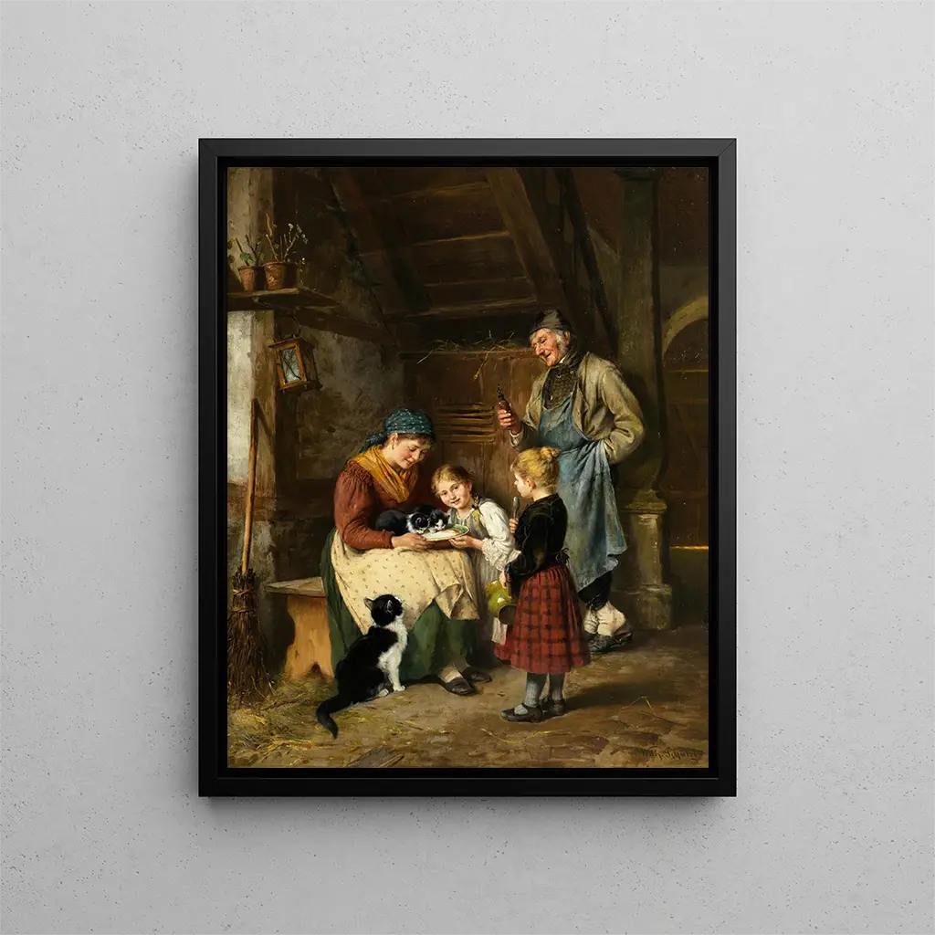 Kiehtovassa taiteen maailmassa jotkut teokset onnistuvat vangitsemaan elämän olemuksen niin hienovaraisesti, että ne ylittävät ajan rajat. "Les mères chats - Wilhelm Schütze" on tästä esimerkki. Tämä maalaus, joka herättää lempeyden ja yhteisymmärryksen tunteita, kutsuu katsojan sukeltamaan maailmaan, jossa luonto ja ihmisyys kohtaavat äärettömän pehmeästi. Tarkastellessaan tätä teosta, tuntee välittömän yhteyden esitettyihin hahmoihin, ikään kuin taiteilija olisi onnistunut pysäyttämään intiimin hetken jatkuvasti liikkuvassa maailmassa. Taidetuloste tämän teoksen mahdollistaa nauttimisen paitsi Schützen teknisestä mestaruudesta, myös jokaisen siveltimenvedon säteilevästä emotionaalisesta syvyydestä.