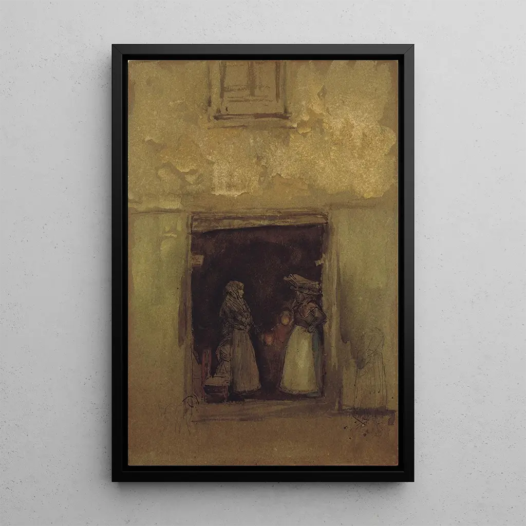 Les Commères, James Abbott McNeill Whistlerin merkittävä teos, johdattaa meidät vilkkaaseen kohtaukseen, jossa naishahmot käyvät vilkasta keskustelua. Kompositio on huolellisesti suunniteltu, jokainen hahmo sijoittuu tarkasti, luoden visuaalisen tasapainon. Värit, kirkkaat ja monipuoliset, luovat lämpimän ja ystävällisen tunnelman, kun taas Whistlerin tekniikka, yhdistäen impressionismin ja realismin, herättää jokaisen yksityiskohdan eloon. Tämä taidegrafiikka kutsuu katsojan uppoutumaan kohtauksen intiimiin maailmaan, tuntemaan vuorovaikutusten energian ja arvostamaan inhimillisten vuorovaikutusten kauneutta.