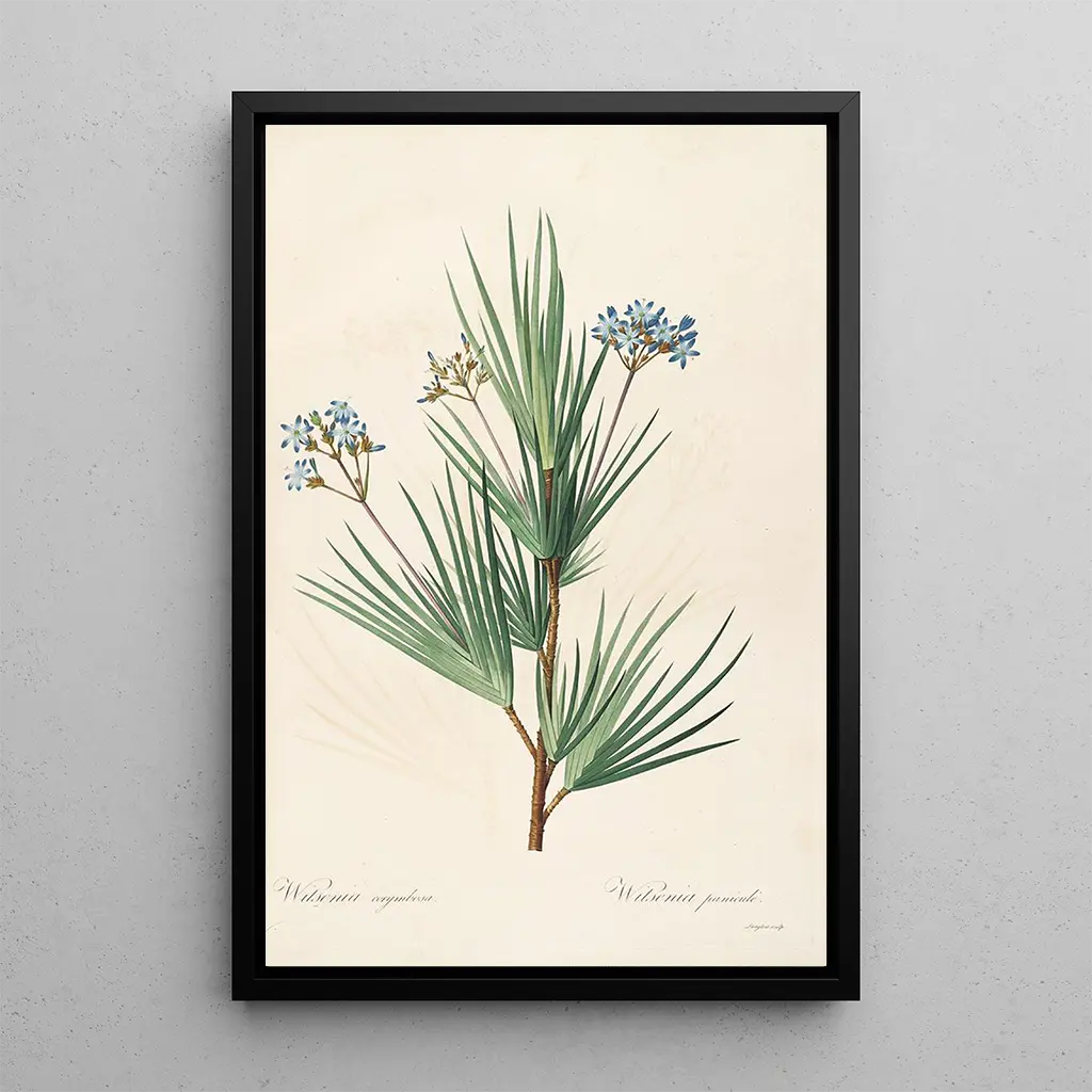 La taidegrafiikka de 'Les liliacées Pl32' nous plonge dans un univers floral éclatant, où chaque fleur semble vibrer de vie. Les nuances vives de jaune, de bleu et de violet se mêlent harmonieusement, créant un tableau dynamique et joyeux. Redouté, avec sa technique d’aquarelle, parvient à capturer la lumière et la texture des pétales, rendant chaque détail presque palpable. L'œuvre évoque une sensation de fraîcheur printanière, invitant à la rêverie et à l'évasion au cœur de la nature.