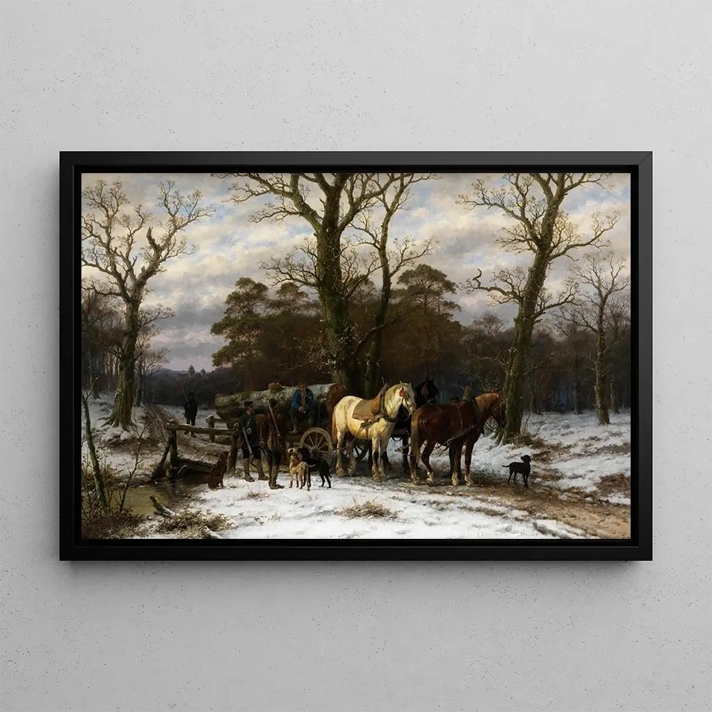 Les Marchands de bois : une scène vivante de l'activité humaine Dans "Les Marchands de bois", l'œuvre de Caesar Bimmermann, une atmosphère vibrante se dégage des couleurs chaudes et des détails minutieux. Le tableau dépeint une scène de marché où des hommes s'affairent autour de troncs d'arbres, illustrant la vitalité du commerce forestier. Les teintes terreuses et les jeux de lumière créent une ambiance à la fois réaliste et poétique, invitant le spectateur à plonger dans ce monde de labeur. La technique de Bimmermann, qui mêle habilement le réalisme et une touche d'impressionnisme, donne vie à chaque personnage, rendant l'ensemble captivant et dynamique. Caesar Bimmermann : un témoin de son époque Caesar Bimmermann, actif au XIXe siècle, est souvent associé au mouvement réaliste, cherchant à représenter la vie quotidienne avec une précision saisissante. Influencé par les grands maîtres de son temps, il a su capturer l'essence de la société en pleine mutation, marquée par l'industrialisation. Son œuvre reflète les préoccupations sociales et économiques de son époque, tout en mettant en lumière le travail acharné des hommes et des femmes. Bimmermann, à travers ses tableaux, nous offre un aperçu précieux de la vie rurale et urbaine, faisant de lui un artiste incontournable de son temps. Une acquisition décorative aux multiples atouts Opter pour une reproduction de "Les Marchands de bois" est une excellente idée pour enrichir votre intérieur. Que ce soit dans un salon, un bureau ou une chambre, ce tableau apporte une touche d'authenticité et de chaleur. La qualité de la reproduction garantit une fidélité aux détails originaux, permettant de profiter de l'œuvre dans toute sa splendeur. Avec son attrait esthétique indéniable, cette toile devient un point focal de votre décoration, suscitant l'admiration de vos invités et créant une ambiance conviviale et inspirante.