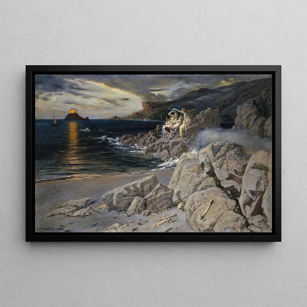 Ernst Stückelberg, peintre suisse actif à la fin du XIXe et au début du XXe siècle, est connu pour ses représentations de la nature et des thèmes mythologiques. Influencé par le symbolisme et le romantisme, il a su créer des œuvres qui capturent l'imaginaire collectif autour des mythes et des légendes. Les Sirènes, emblématiques de son style, témoignent de son habileté à fusionner la réalité et le fantastique. À travers ses tableaux, Stückelberg explore les émotions humaines et la beauté du monde naturel, laissant une empreinte durable dans l'histoire de l'art.