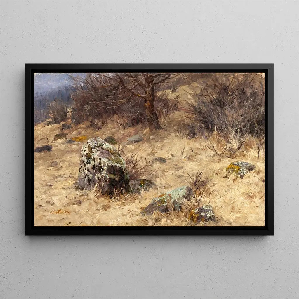 Les Terres du Bécasse : une ode à la ruralité La reproduction de Les Terres du Bécasse par Herman Hartwich nous plonge dans un univers rural riche en couleurs et en textures. Ce tableau, vibrant de vie, dépeint un paysage où la terre et le ciel se rencontrent dans une harmonie parfaite. Les teintes chaudes et terreuses évoquent la richesse de la nature, tandis que les détails des champs cultivés et des cieux nuageux ajoutent une profondeur à la scène. L'atmosphère qui se dégage de cette œuvre est celle d'une tranquillité bucolique, invitant à la contemplation des cycles de la vie. Herman Hartwich : un témoin de la vie rurale Herman Hartwich, actif au début du XXe siècle, est un artiste dont les œuvres reflètent la beauté et la simplicité de la vie rurale. Influencé par le mouvement naturaliste, il cherche à capturer la réalité du monde agricole avec une sensibilité particulière. Ses tableaux, souvent empreints de nostalgie, témoignent d'un profond respect pour la nature et les traditions paysannes. Hartwich a su immortaliser des scènes de la vie quotidienne, faisant de lui un acteur important dans la représentation de la ruralité au sein de l'art européen. Une acquisition décorative aux multiples atouts Choisir une reproduction de Les Terres du Bécasse, c'est enrichir votre espace de vie avec une œuvre qui évoque la beauté du monde rural. Parfaite pour un salon, un bureau ou une chambre, cette toile s'adapte à divers styles de décoration, apportant une touche d'authenticité et de chaleur. La qualité de la reproduction assure une fidélité aux détails et aux couleurs de l'œuvre originale, tout en offrant un attrait esthétique indéniable. En intégrant ce tableau à votre intérieur, vous créez un environnement apaisant, inspiré par la nature et la vie simple.