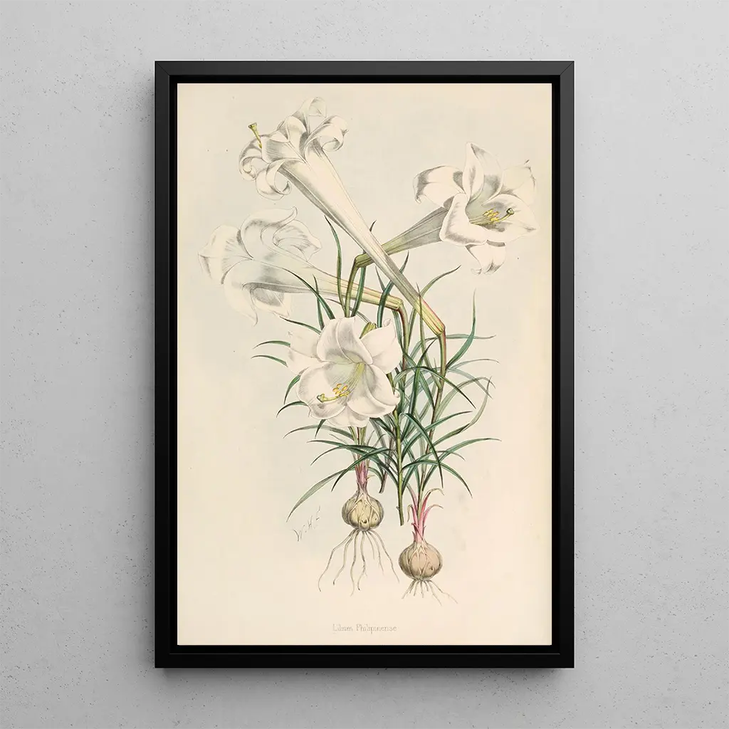 Lilium Philipinense, Walter Hood Fitchin merkittävä taidegrafiikka, kuljettaa meidät maailmaan, jossa luonto kukoistaa loistokkaasti. Tämä taidegrafiikka, täynnä yksityiskohtia, korostaa terälehtien hienostuneisuutta ja värien elävää palettia, jotka herättävät tropiikkien lämpöä. Fitchin tekniikka, joka on luonteeltaan tarkkaa realismia, mahdollistaa lähes kukkien tekstuurin tuntemisen. Tästä taidegrafiikasta huokuva tunnelma on sekä rauhoittava että inspiroiva, kutsuen katsojan uppoutumaan filippiiniläisen kasviston loistoon.