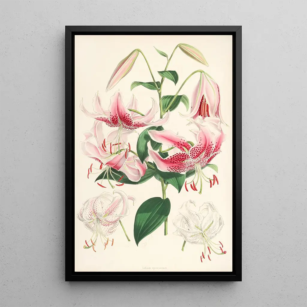 Lilium speciosum -taidegrafiikan reproduktio on täydellinen sisustuselementti, joka tuo kukkivan tunnelman kotiisi. Olipa kyseessä olohuone, toimisto tai makuuhuone, tämä kangas houkuttelee laadukkaalla painatuksellaan ja uskollisuudellaan alkuperäisteoksen yksityiskohdille. Sen esteettinen vetovoima tekee siitä keskeisen osan sisustustasi, herättäen vieraidesi kiinnostuksen ja ihailun. Valitse tämä taidegrafiikka ja anna itsesi lumoutua tämän kasvitieteellisen kuvituksen ajattomasta kauneudesta.