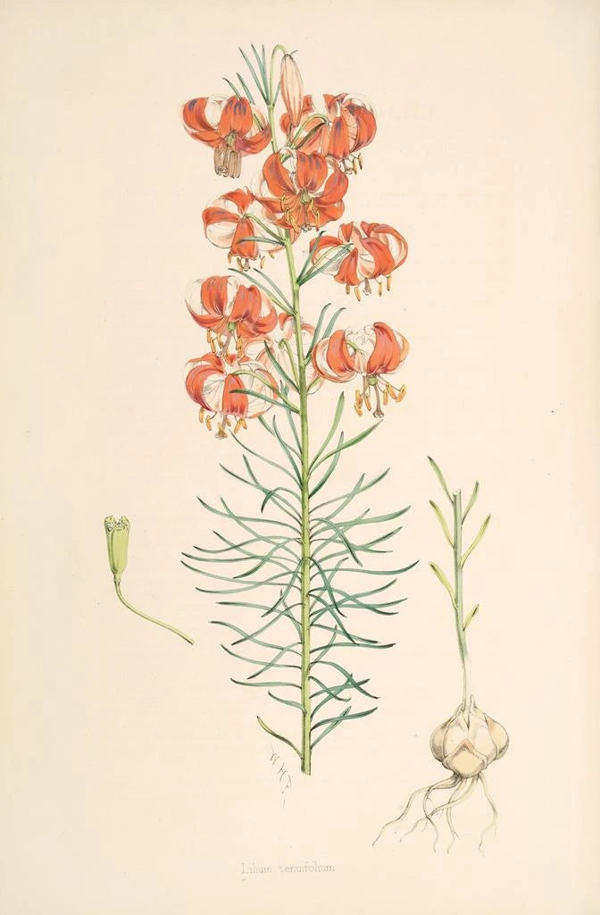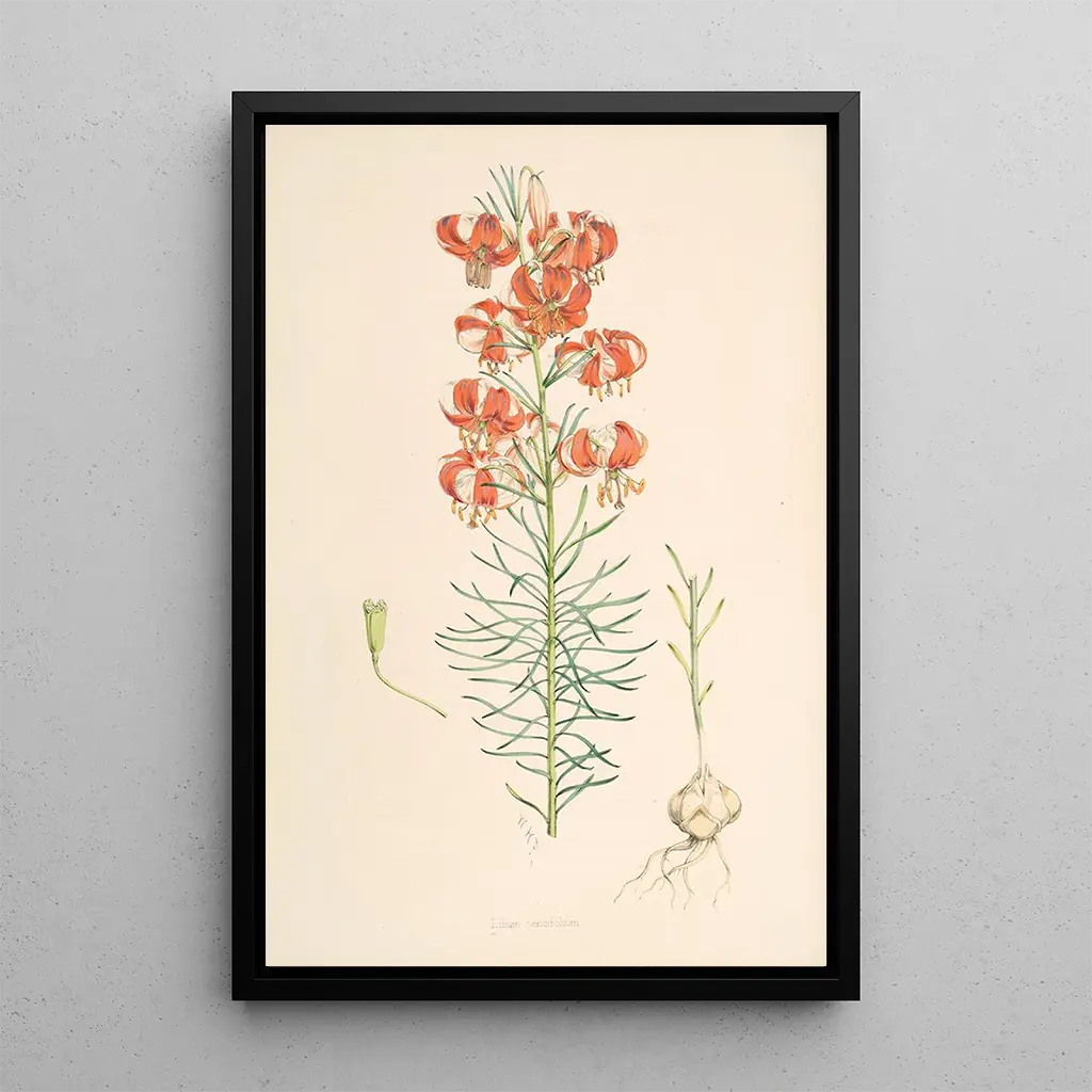Walter Hood Fitch, 1800-luvun kasvitieteilijä ja kuvittaja, jätti jälkensä aikakauteensa ainutlaatuisella lähestymistavallaan kasvien esittämiseen. Lontoossa opiskellut taideakatemiassa hänet vaikutti viktoriaaninen liike, joka arvosti luontoa ja tiedettä. Hänen teoksensa, usein julkaistuna kasvitieteellisissä teoksissa, osoittavat poikkeuksellista tarkkuutta ja intohimoa kasvilajistoon. Fitch teki yhteistyötä monien tiedemiesten ja luonnontutkijoiden kanssa, osaltaan dokumentoiden biodiversiteettiä. Hänen tyylinsä, sekä realistinen että runollinen, kunnioittaa kasvien kauneutta ja palvelee samalla opetuksellista tarkoitusta. Lilium Tenuifolium on yksi hänen ikonisista teoksistaan, joka täydellisesti ilmentää hänen lahjakkuuttaan.