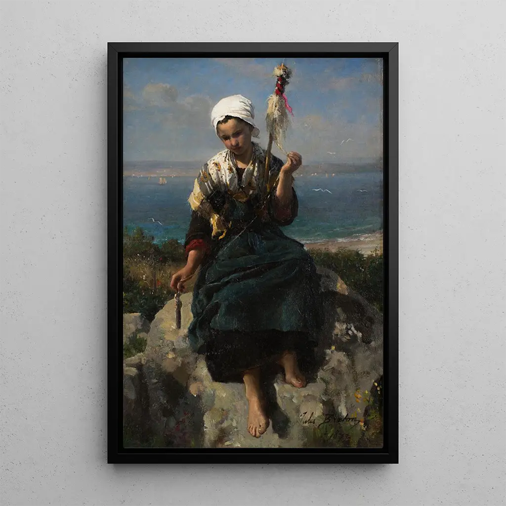 Jules Breton, né en 1827, est un artiste français emblématique du mouvement réaliste. Influencé par les paysages de son enfance en Picardie, il dépeint avec tendresse les scènes rurales et les travailleurs de la terre. Sa carrière, marquée par une quête de vérité et d'authenticité, s'inscrit dans une époque où l'art se tourne vers la représentation fidèle du monde. Breton a su capturer l'essence de la vie paysanne, faisant de ses œuvres un témoignage précieux de la culture rurale française au XIXe siècle. Son style, caractérisé par une grande maîtrise de la lumière et des couleurs, a influencé de nombreux artistes de son temps.