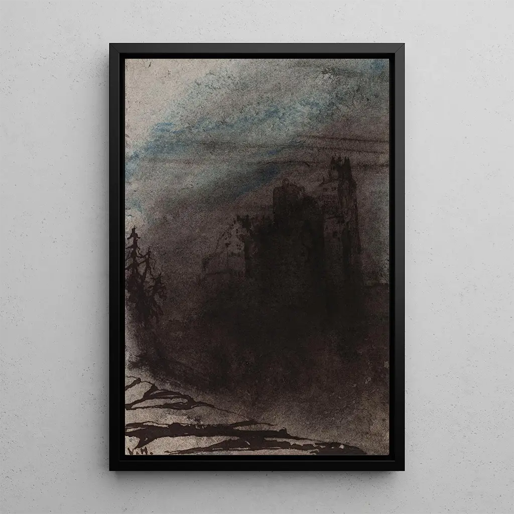 Tässä kiehtovassa teoksessa Victor Hugo kuljettaa meidät maisemaan, jossa linnan majesteettisuus kohoaa ylpeänä pitkien mäntyjen keskellä. Värit, rikkaat ja vivahteikkaat, luovat sekä rauhallisen että salaperäisen tunnelman. Vesiväritekniikka, sen hienojen päällekkäisyyksien ansiosta, mahdollistaa valon lähes taianomaisen välittymisen, korostaen varjoja ja heijastuksia. Tämä taulu, sekä romanttinen että kuvaileva, kutsuu katsojan syvälliseen pohdintaan, jossa jokainen yksityiskohta vaikuttaa kuiskivan unohtuneista tarinoista.