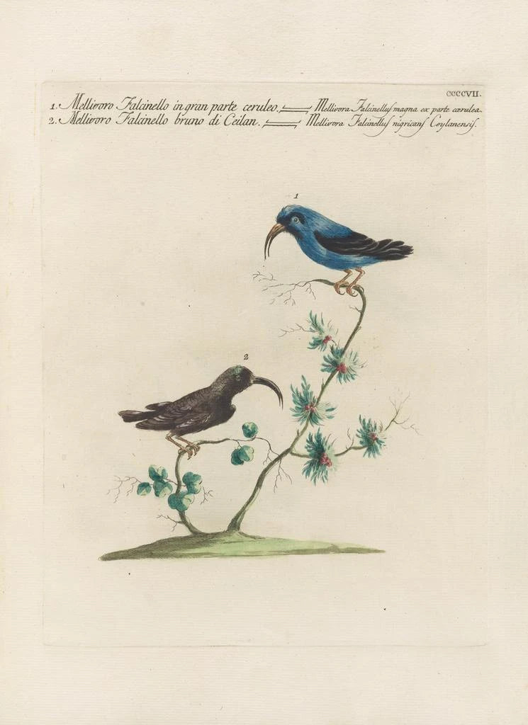 Saverio Manettin teos "Ornithologia methodice digesta Pl389" on kiehtova taidegrafiikka, joka vangitsee lintujen loiston niiden luonnollisessa elinympäristössä. Värikkäiden sävyjen ja huolellisen yksityiskohtien ansiosta tämä taidegrafiikka luo rauhan ja ihailun tunnelman. Käytetty kaiverrustekniikka mahdollistaa jokaisen höyhenen ja kaaren lähes kosketeltavan tuntuista esittämistä, kutsuen katsojan sukeltamaan maailmaan, jossa luonto ja taide kohtaavat. Tasapainoinen ja harmoninen sommittelu tekee tästä teoksesta todellisen mestariteoksen, joka juhlistaa lintutieteellisen monimuotoisuuden rikkautta.