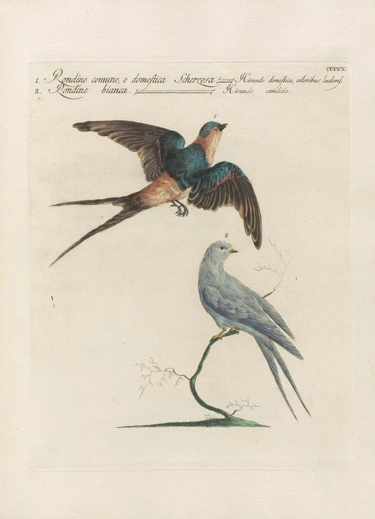 "Ornithologia methodice digesta Pl392" Saverio Manettin teos on kiehtova teos, joka paljastaa lintulajien rikkautta ja monimuotoisuutta. Värikkään paletin ja huomattavan tarkkuuden ansiosta tämä taidegrafiikka kuljettaa katsojan maailmaan, jossa jokainen lintu on esitetty huolellisesti ja hienovaraisesti. Kaiverrustekniikka, yhdistettynä harmoniseen sommitteluun, luo keveyden ja arvokkuuden ilmapiirin, kutsuen tarkkailemaan yksityiskohtia huolellisesti. Tämä teos on todellinen luonnon juhla, jossa taide ja tiede kietoutuvat yhteen tarjoten ainutlaatuisen näkymän eläinmaailmaan.