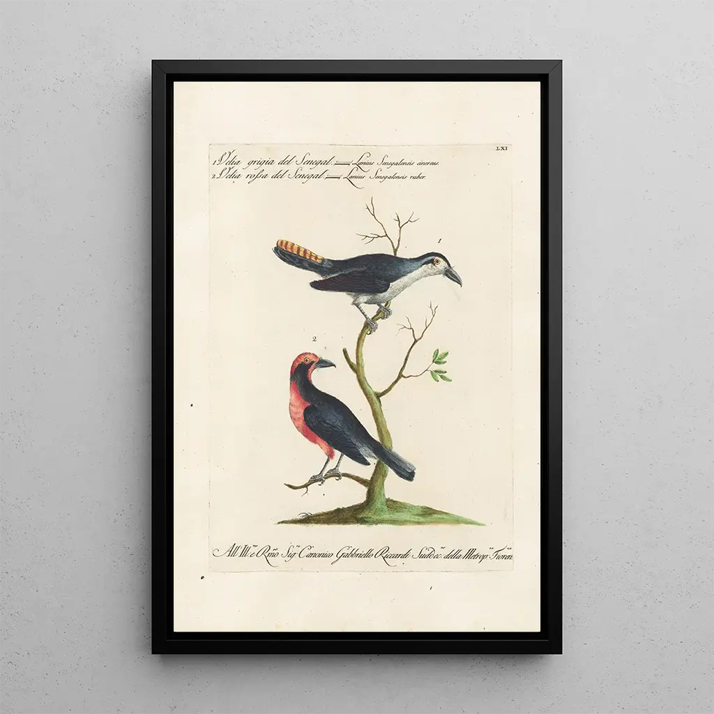 Saverio Manettin Ornithologia järjestelmällisesti aseteltuna Pl061 -taidegrafiikka on todellinen kunnianosoitus lintutaiteelle. Tämä taulu, joka on täynnä yksityiskohtia, esittelee lukuisia kirkkaasti höyhenpukuineja lintuja huolellisesti aseteltuna herkälle taustalle. Elävät värit ja hienovaraiset sävyt sulautuvat harmonisesti, luoden sekä elävän että rauhoittavan ilmapiirin. Manettin tekniikka, joka yhdistää tieteellisen tarkkuuden ja taiteellisen herkkyyden, kutsuu tarkkaavaiseen pohdintaan, jossa jokainen lintu näyttää heräävän eloon katsojan katseessa.