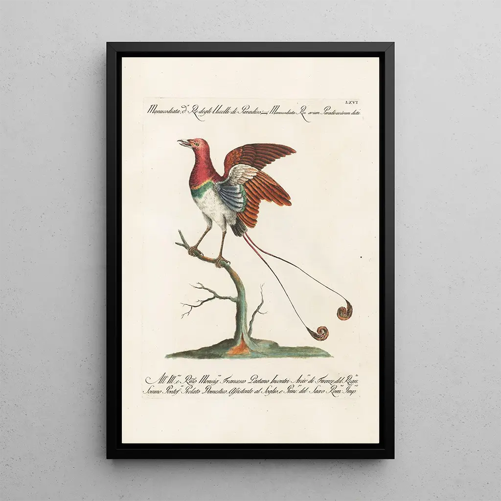 Saverio Manettin taidegrafiikkaa Ornithologia järjestelmällisesti aseteltuna Pl066 esittää juhlan lintulajien monimuotoisuudelle. Tämä huolellisesti laadittu teos korostaa erilaisia lintuja, joista jokainen on esitetty poikkeuksellisen tarkasti. Värit, jotka vaihtelevat kirkkailta sävyiltä pehmeämpiin sävyihin, luovat elävän taulun, joka houkuttelee katsetta ja stimuloi mielikuvitusta. Tämä teoksen välittämä tunnelma on sekä iloinen että rauhallinen, kutsuen katsojan uppoutumaan kiehtovaan lintumaailmaan.