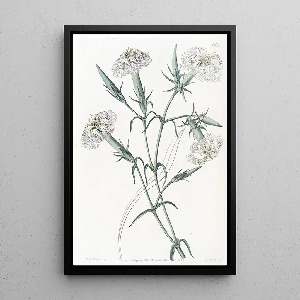 L'Œillet du Liban, Sydenham Edwardsin merkittävä taidegrafiikka-teos, erottuu eloisalla väripaletillaan ja yksityiskohtaisilla yksityiskohdillaan. Tämä taidegrafiikka vangitsee luonnon olemuksen, jossa jokainen terälehti näyttää hehkuvan valossa. Vaaleanpunaisen ja vihreän sävyt kietoutuvat harmonisesti yhteen, luoden sekä rauhoittavan että energisoivan tunnelman. Vesiväritekniikka, jota käytetään mestarillisesti, antaa tälle kankaalle keveyttä ja sulavuutta, jotka kutsuvat katseluun. Tarkastellessasi tätä teosta, voit melkein tuntea kukkien hienovaraisen tuoksun, ikään kuin se olisi käden ulottuvilla.