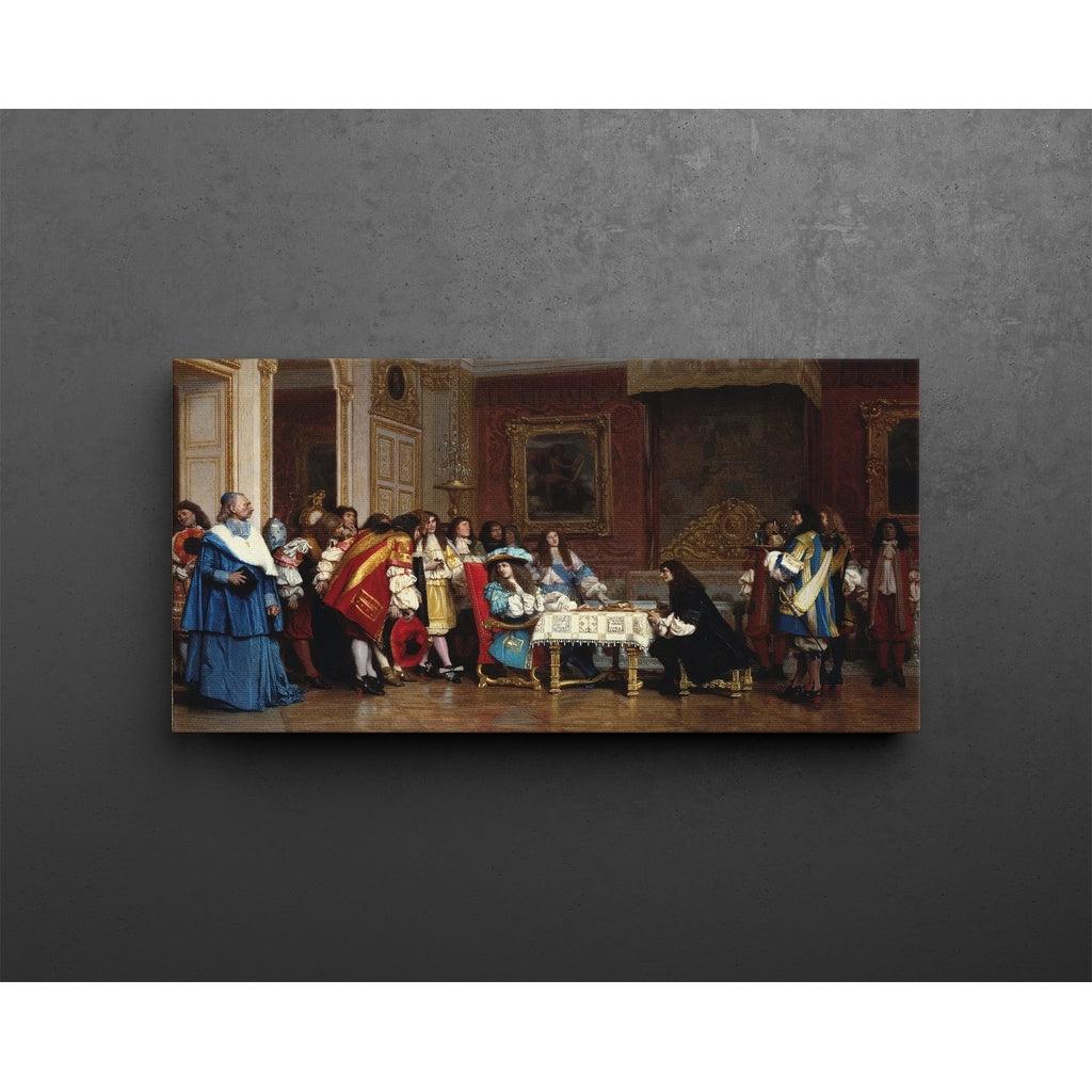 Ce chef-d'œuvre de Gérôme est ancré dans un contexte historique unique, à une époque où la cour royale à Versailles était le centre névralgique de la culture et de l'art. L'œuvre présente des détails minutieux, des costumes somptueux et une composition équilibrée, témoignant de la maîtrise technique de Gérôme. Son utilisation audacieuse de la lumière et de l'ombre confère à la scène une profondeur émotionnelle, rendant presque palpable la tension entre le pouvoir et la créativité.