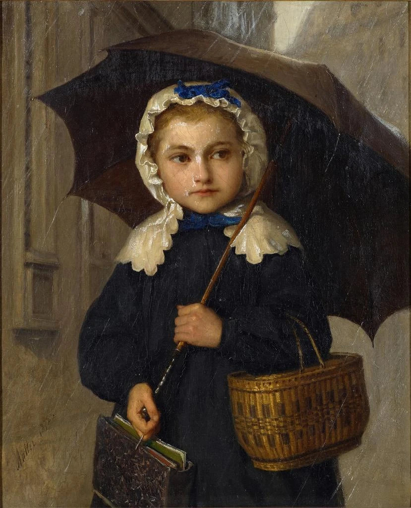 Taidetuloste Louise Ankerilla sateenvarjon kanssa - Albert Anker – Lumoava johdanto