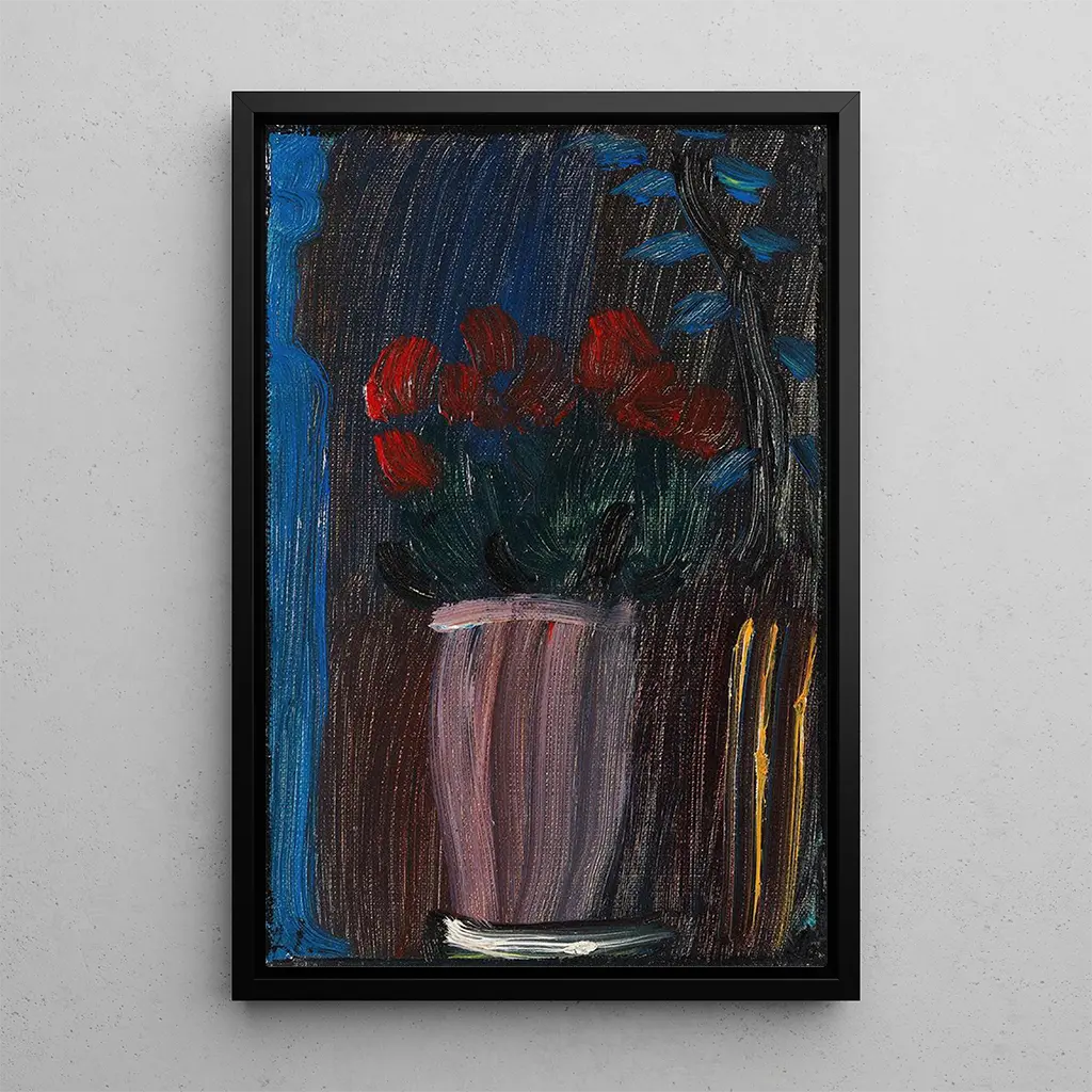 Taidegrafiikkaa Alexej von Jawlenskyn luonnosta, joka sukeltuu eloisaan maailmaan, jossa värit kietoutuvat hienovaraisesti yhteen. Cyclamenit, kirkkaan vaaleanpunaisine sävyineen ja herkkin muotoineen, näyttävät tanssivan kankaalla, kun taas abstrakti tausta, sinisen ja vihreän sävyissä, luo sekä rauhoittavan että dynaamisen ilmapiirin. Jawlenskyn tekniikka, joka yhdistää figuratiivisen ja abstraktin, mahdollistaa näiden kukkien elinvoiman kokemisen, viitaten syvälliseen luonnon pohdintaan. Jokainen sivellinvedos tuntuu olevan kunnianosoitus elämän katoavalle kauneudelle.