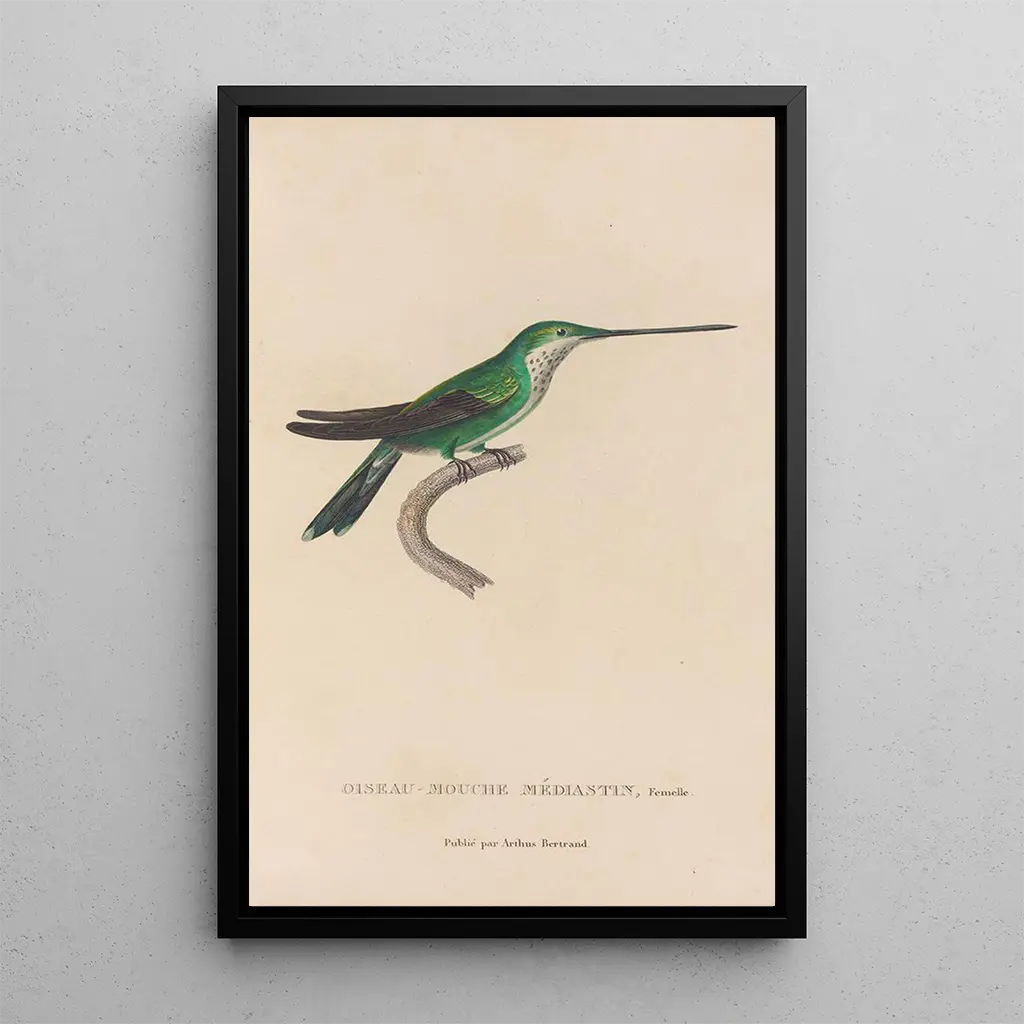 La taidegrafiikka Histoire naturelle des oiseaux-mouches Pl30 est une œuvre fascinante qui met en lumière la diversité et la beauté des oiseaux-mouches. Les teintes chatoyantes, allant des bleus profonds aux jaunes éclatants, créent une ambiance dynamique et joyeuse. La technique de gravure de René Primevère Lesson permet de capturer avec précision les détails minutieux des plumages, révélant la grâce et l'élégance de ces oiseaux. Cette toile invite à une exploration visuelle, célébrant la richesse du monde naturel et la magie des créatures ailées.
