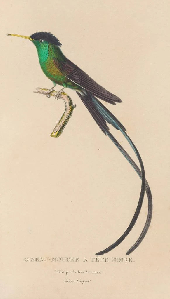 René Primevère Lesson, 1800-luvun luonnontieteilijä ja lintututkija, oli keskeisessä roolissa lintojen tutkimuksessa ja esittämisessä. Hän sai vaikutteita aikansa tieteellisistä tutkimuksista ja osasi yhdistää tieteellisen tarkkuuden ja taiteellisen herkkyyden. Hänen teoksensa, mukaan lukien tämä Histoire naturelle des oiseaux-mouches Pl17 -taidegrafiikka, todistavat hänen sitoutumisestaan lintujen dokumentointiin ja samalla esteettisen kosketuksen lisäämiseen. Lessonin panos keijukaislintujen, näiden kiehtovien olentojen, ymmärtämiseen on edelleen voimissaan hänen kuvitustensa kautta, jotka inspiroivat luonnon ystäviä yhä edelleen.