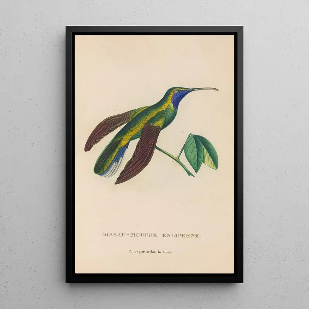René Primevère Lesson, naturaliste et illustrateur du XIXe siècle, a su marier science et art dans ses œuvres. Influencé par les découvertes scientifiques de son époque, il a consacré sa carrière à l’étude des oiseaux, en particulier ceux des Antilles et de l’Amérique du Sud. Son approche minutieuse et son souci du détail ont fait de lui une figure incontournable de l’ornithologie artistique. À travers ses taidegrafiikkaa, Lesson a non seulement documenté la biodiversité aviaire, mais a également contribué à l’émergence d’un style qui allie précision scientifique et esthétique raffinée.