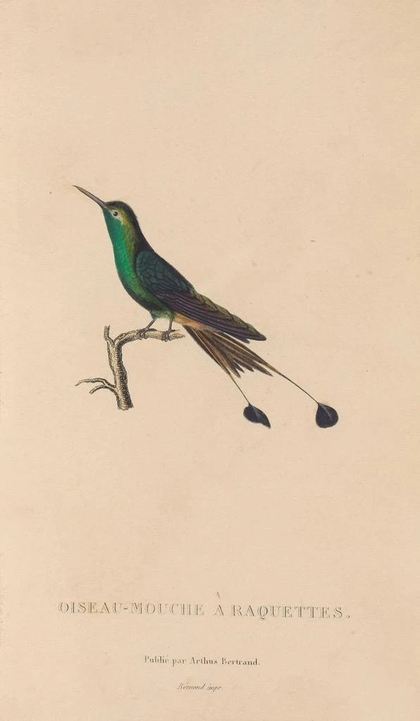 René Primevère Lesson, 1800-luvun luonnontieteilijä ja kuvittaja, on jättänyt jälkensä aikakauteensa kontribuutioillaan lintutieteeseen ja lintolajien esittämiseen. Hänen aikansa tieteellisten löytöjen vaikutuksesta hän osasi yhdistää tieteellisen tarkkuuden ja taiteellisen herkkyyden. Hänen teoksensa, mukaan lukien tämä Histoire naturelle des oiseaux-mouches Pl40 -taidegrafiikka, todistavat hänen sitoutumisestaan biodiversiteetin dokumentointiin ja lintujen esteettisen kauneuden juhlistamiseen. Lesson teki yhteistyötä tiedemiesten ja tutkimusmatkailijoiden kanssa, mikä antoi hänelle pääsyn harvinaisiin näytteisiin ja rikastutti hänen tietämystään, tehden hänestä merkittävän hahmon luonnontieteellisessä kuvittamisessa.