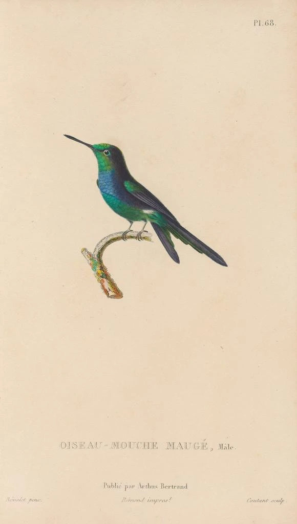 René Primevère Lesson, 1800-luvun luonnontieteilijä ja kuvittaja, on näytellyt keskeistä roolia lintujen tutkimuksessa, erityisesti teostensa kautta, jotka yhdistävät tieteen ja taiteen. Aikansa löytöjen ja kasvitieteellisten tutkimusten innoittamana hän osasi herättää aiheensa eloon poikkeuksellisella tarkkuudella. Hänen työnsä sijoittuu taiteen ja biologian risteykseen, edistäen siten lintolajien parempaa ymmärtämistä. Hänen teostensa, kuten tämä taidegrafiikka Histoire naturelle des oiseaux-mouches Pl69, todistavat hänen perintönsä merkityksestä tieteellisen kuvittamisen alalla.