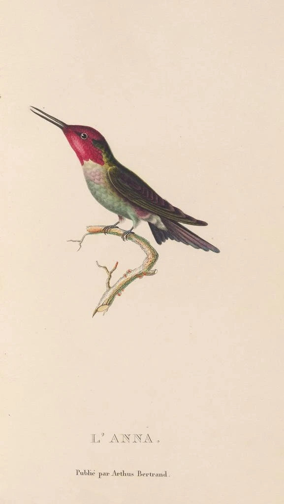René Primevère Lesson, naturaliste et ornithologue du XIXe siècle, a marqué son époque par ses contributions à l'étude des oiseaux. Influencé par les découvertes scientifiques de son temps, il a su allier rigueur scientifique et sensibilité artistique. Ses œuvres, dont "Histoire naturelle des oiseaux-mouches Pl75", témoignent d'une époque où l'exploration des espèces exotiques fascinait les esprits curieux. En tant que membre de l'Institut de France, Lesson a joué un rôle clé dans la documentation des espèces aviaires, faisant de lui une figure incontournable de l'ornithologie. Son travail a non seulement enrichi la connaissance scientifique, mais a également inspiré de nombreux artistes et naturalistes.