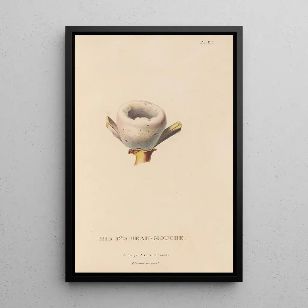 Taidegrafiikan "Histoire naturelle des oiseaux-mouches Pl84" reproduktio kuljettaa meidät maailmaan, jossa lintulajien monimuotoisuus on esillä. Jokainen lintu on kuvattu tarkasti, paljastaen kiehtovia yksityiskohtia niiden sulasta ja asennosta. Elävät ja monipuoliset värit, loistavista sävyistä hienovaraisempiin, luovat dynaamisen ja elävän ilmapiirin. René Primevère Lessonin kaiverrustekniikka mahdollistaa näiden olentojen ohikiitävän kauneuden vangitsemisen, kunnioittaen niiden eleganssia ja viehättävyyttä.