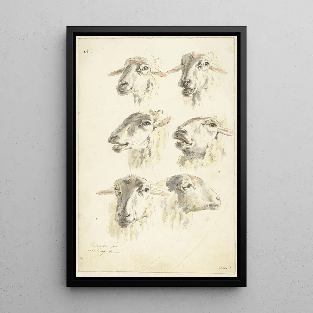 Feuille d'étude avec six têtes de mouton : une exploration de la nature