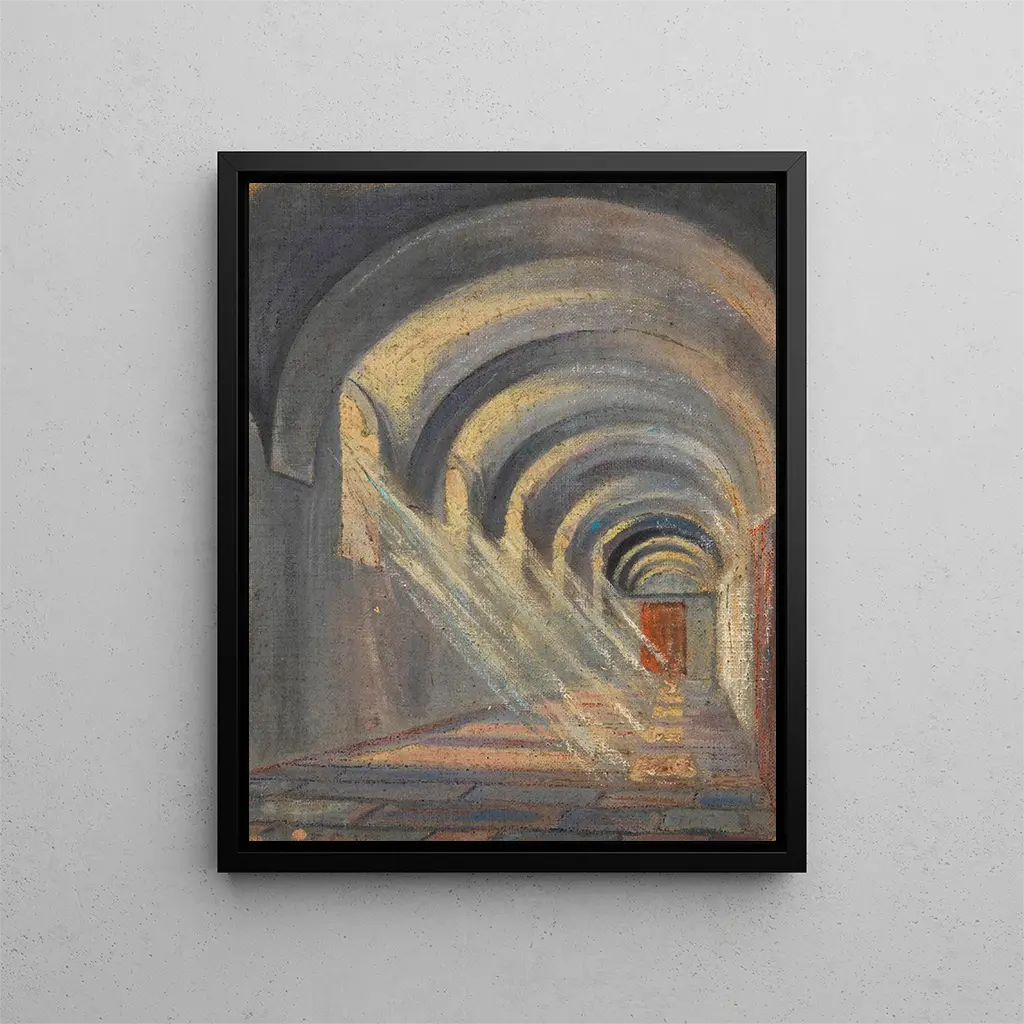 Egon Schiele, tunnettu erottuvasta tyylistään ja kyvystään ilmaista monimutkaisia tunteita, käyttää tässä rikkaan ja rohkean väripaletin. "Cloître avec lumière directe du soleil" -teos erottuu vaikuttavilla valon leikeillä, joissa aurinko siivilöityy cloître-arkkien läpi, luoden vaikuttavia kontrasteja valaisevien alueiden ja syvien varjojen välillä. Kompositio on sekä tiukka että dynaaminen, mikä osoittaa taiteilijan teknistä hallintaa. Kulmikkaat linjat ja tyylitellyt muodot paljastavat modernistisen lähestymistavan, joka haastaa aikansa konventiot. Schiele ei pelkästään reproduoi todellisuutta; hän uudelleen luo sen, lisäten jokaiseen siveltimenvedon emotionaalisen latauksen, joka resonoi katsojan kanssa.