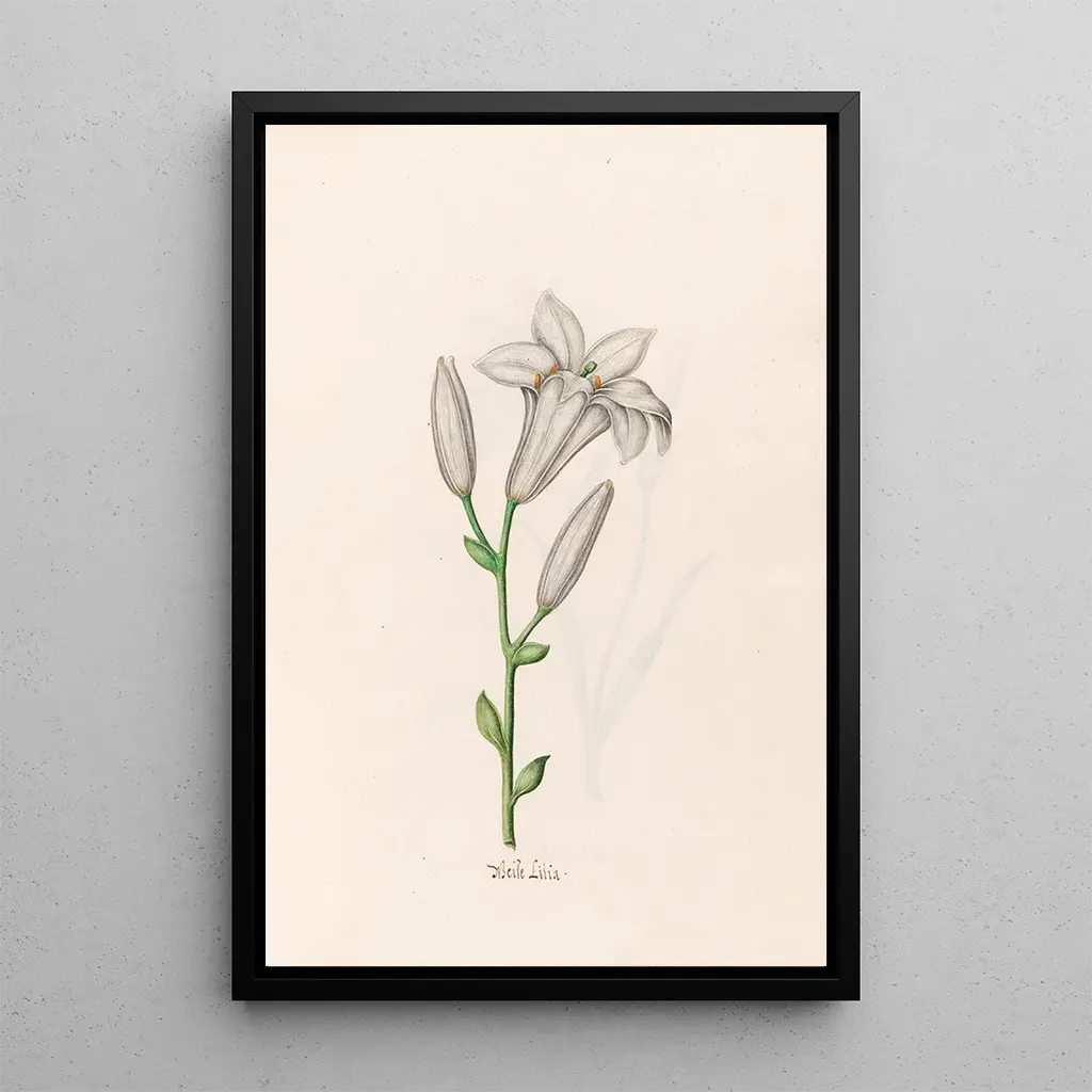 Magdalena Rosina Funckin taidegrafiikka Lys blanc vangitsee tämän ikonisen kukan herkkää kauneutta. Kompositio erottuu hienostuneen yksinkertaisuudellaan, jossa kirkkaanvalkoiset terälehdet puhkeavat kauniisti esiin. Lehtien vihreän sävyt lisäävät hienovaraista syvyyttä, kun taas epätarkka tausta luo rauhallisen ja mietiskelevän tunnelman. Funck, hänen huolellisella tekniikallaan, onnistuu välittämään keveyden ja raikkauden tunteen, kutsuen katsojan uppoutumaan luonnon herkkyyteen. Jokainen yksityiskohta, jokainen varjo, on huolellisesti työstetty luomaan teoksen, joka huokuu rauhaa.
