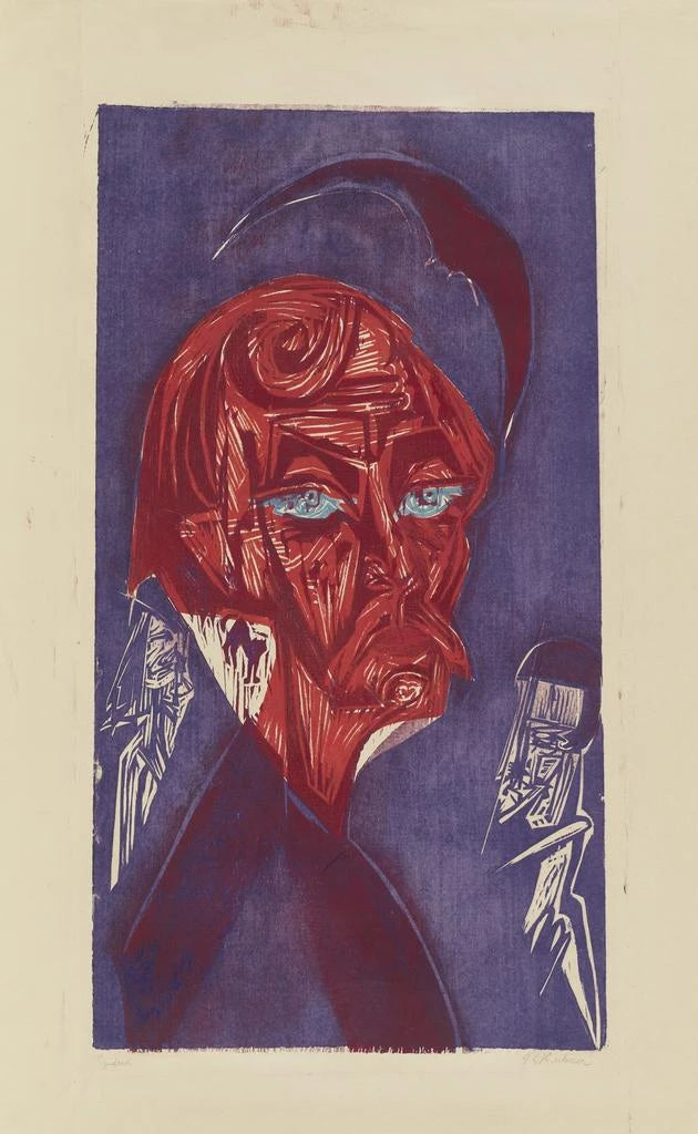Syntynyt vuonna 1880, Ernst Ludwig Kirchner on yksi ekspressionismin liikkeen perustajista Saksassa. Vaikutteita saanut fauvismista ja primitiivisestä taiteesta, hän kehittää ainutlaatuisen tyylin, joka rikkoo aikansa akateemisia perinteitä. Kirchner, Die Brücke -ryhmän jäsen, pyrkii ilmaisemaan syviä tunteita ja yhteiskunnallisia todellisuuksia teoksissaan. Hänen työnsä, voimakkaasti emotionaalinen, heijastaa saksalaisen yhteiskunnan jännitteitä ja mullistuksia 1900-luvun alussa. Karl Stirnerin muotokuva sopii täydellisesti tähän lähestymistapaan, osoittaen yksilön merkityksen muuttuvassa maailmassa.